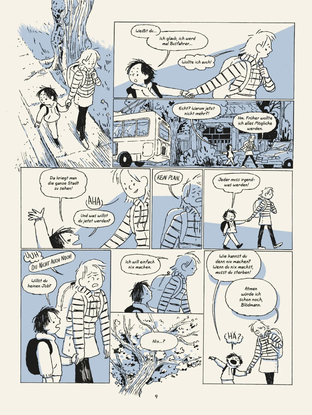 Dieses Anti-Coming-of-Age-Roadtrip-Abenteuer des kanadischen Zeichners Adam de Souza fängt die Ängste und den Humor heute Heranwachsender in einer Zeit des großen Übergangs ein. Mit seiner skizzenhaften Ästhetik erkundet er federleicht die Unsicherheiten des Erwachsenwerdens. Ein Comic für Jugendliche auf der Suche nach Gemeinschaft, Sinn und der Möglichkeit, einfach nur zu existieren.