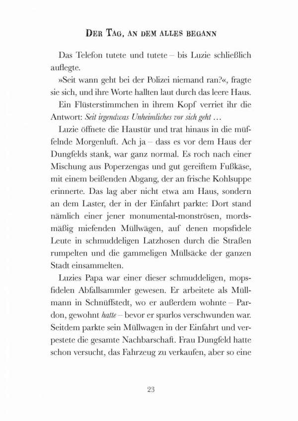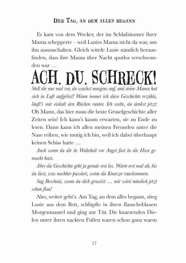 Hörst du es nachts manchmal so komisch knarzen? Und hast du dich schon mal gefragt, wo dieses Geräusch wohl herkommt? Lucy Dungston schon. Und dann, eines Morgens, sind alle Erwachsenen plötzlich spurlos verschwunden – als hätten sie sich in Luft aufgelöst!