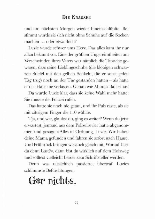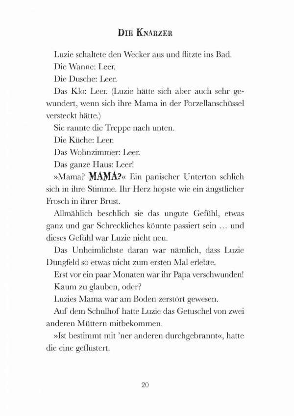 Es ist noch nicht lange her, dass sie ihren Vater verloren hat – dasselbe wird ihr nicht mit ihrer Mutter passieren! Lucy wird sie wiederfinden. Nichts kann sie aufhalten … Abgesehen vielleicht von den Knarzern.