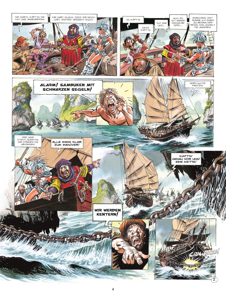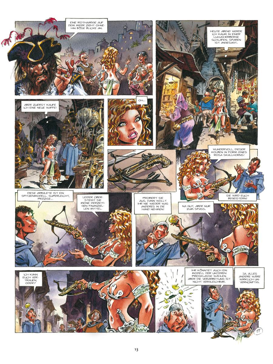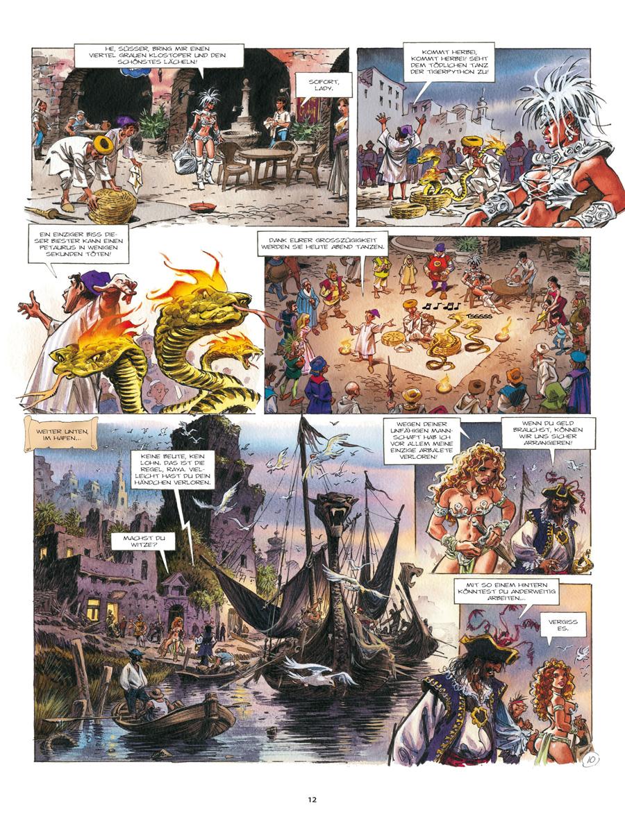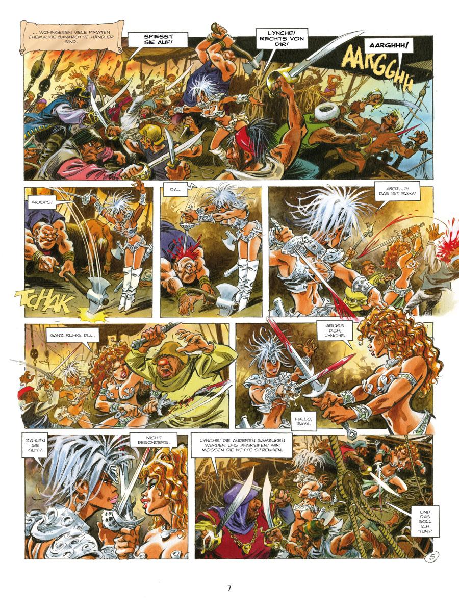 Von den Koggen im Purpurhafen bis zur großen Wüs-te von Delpont ist es für Lynche und Raya, zwei Söldnerinnen im Dienste der humanitären Karawane, ein langer Weg. Ihr Ziel ist es, die Wüstenbewohner vor einer Hungersnot zu retten. Während die rothaarige und beherzte Raya dem charismatischen Karawanenführer Yquem rückhaltlos folgt, so gilt dies nicht für die kompromisslose Lynche. Welche Verbindung gibt es zwischen den Zeichen, die sie auf ihrem Körper trägt, und den Anführern der Expedition? Bald darauf gesellt sich eine dritte Söldnerin, Yssam, zu den beiden Kriegerinnen, die ebenfalls ein mysteriöses Geheimnis zu umgeben scheint. Weit entfernt von ihren alltäglichen Kämpfen führt sie dieses Abenteuer auf den Wegen von Troy hin zu einer unerwarteten und furchtbaren Entdeckung.