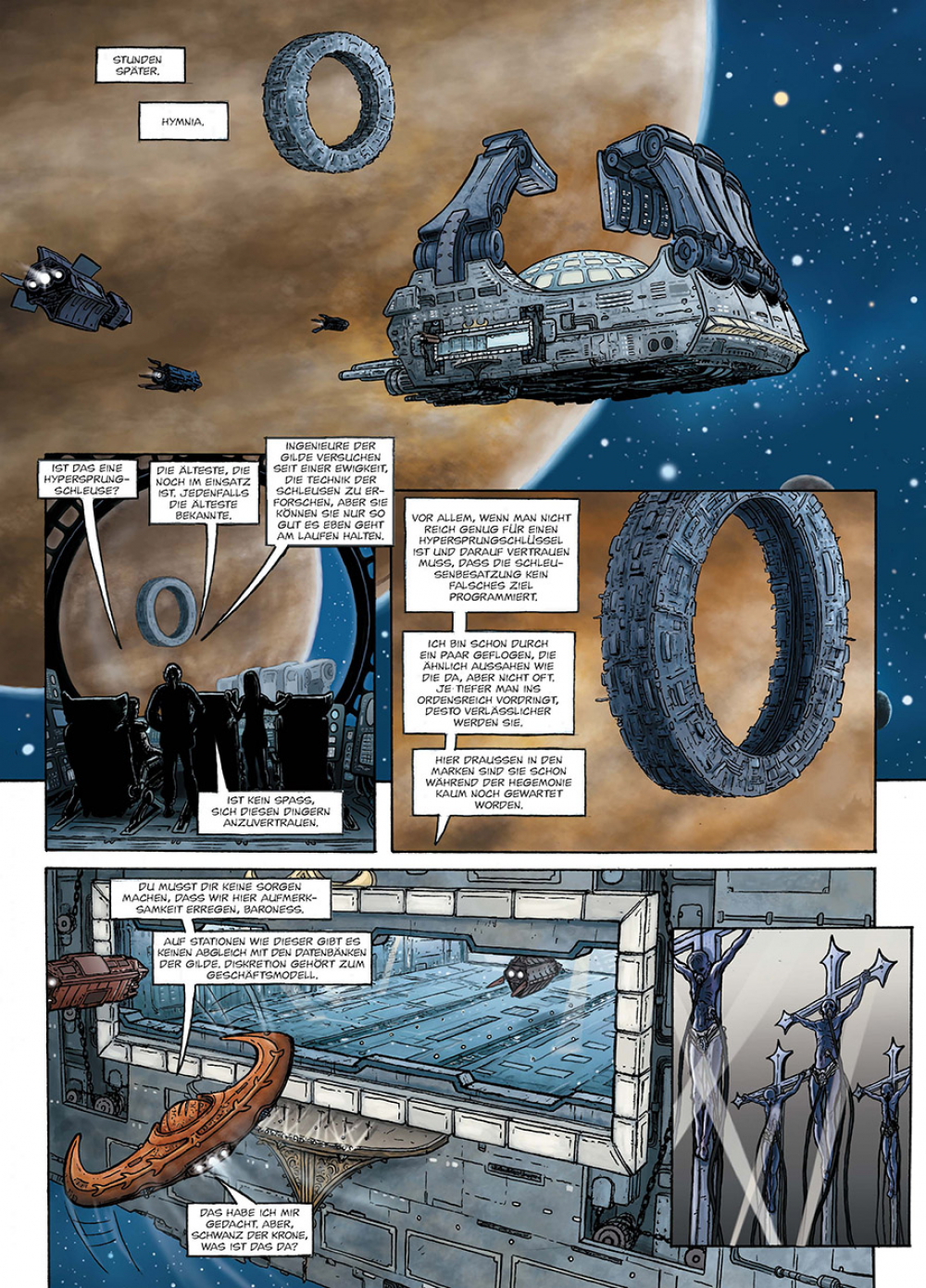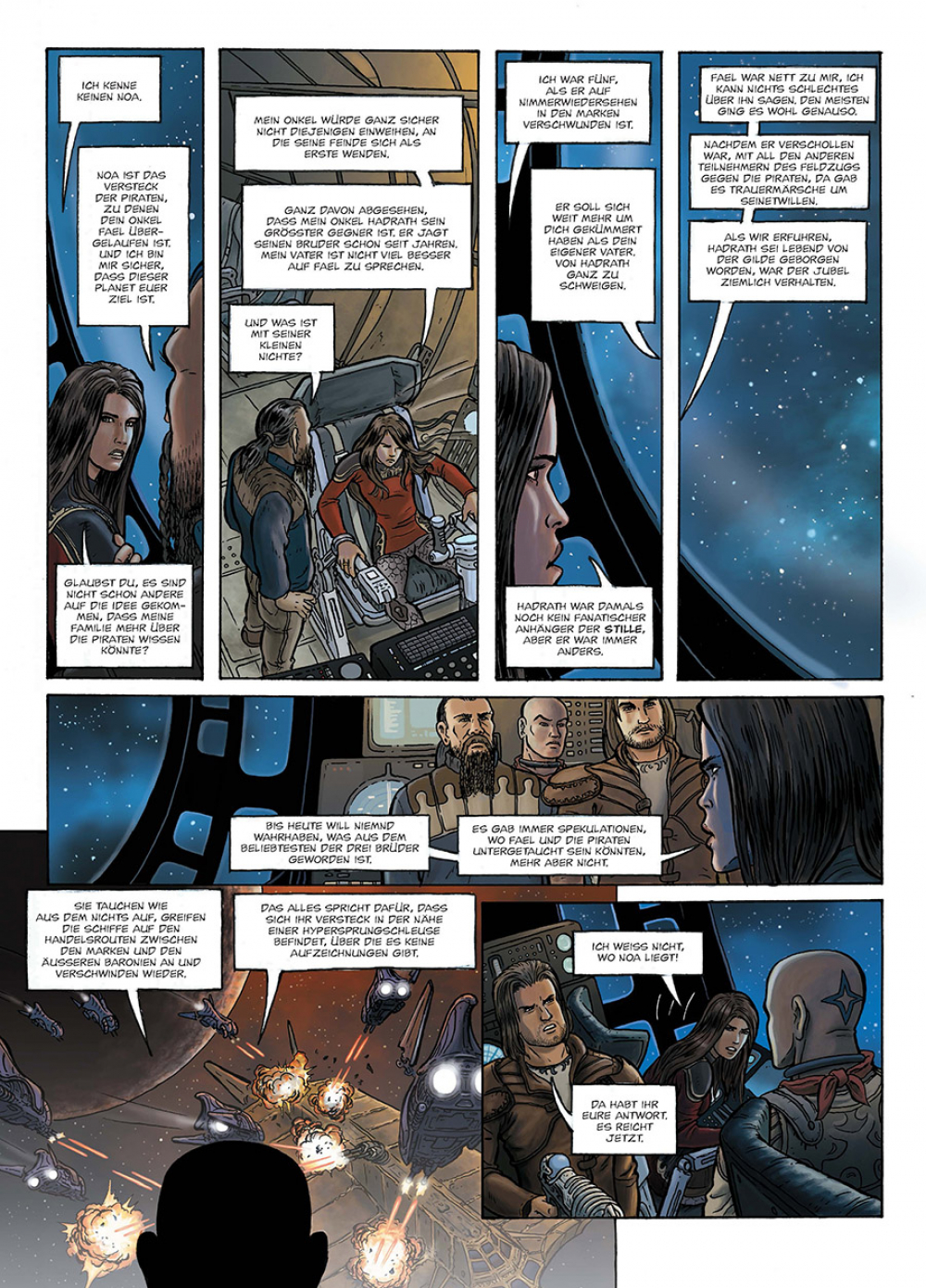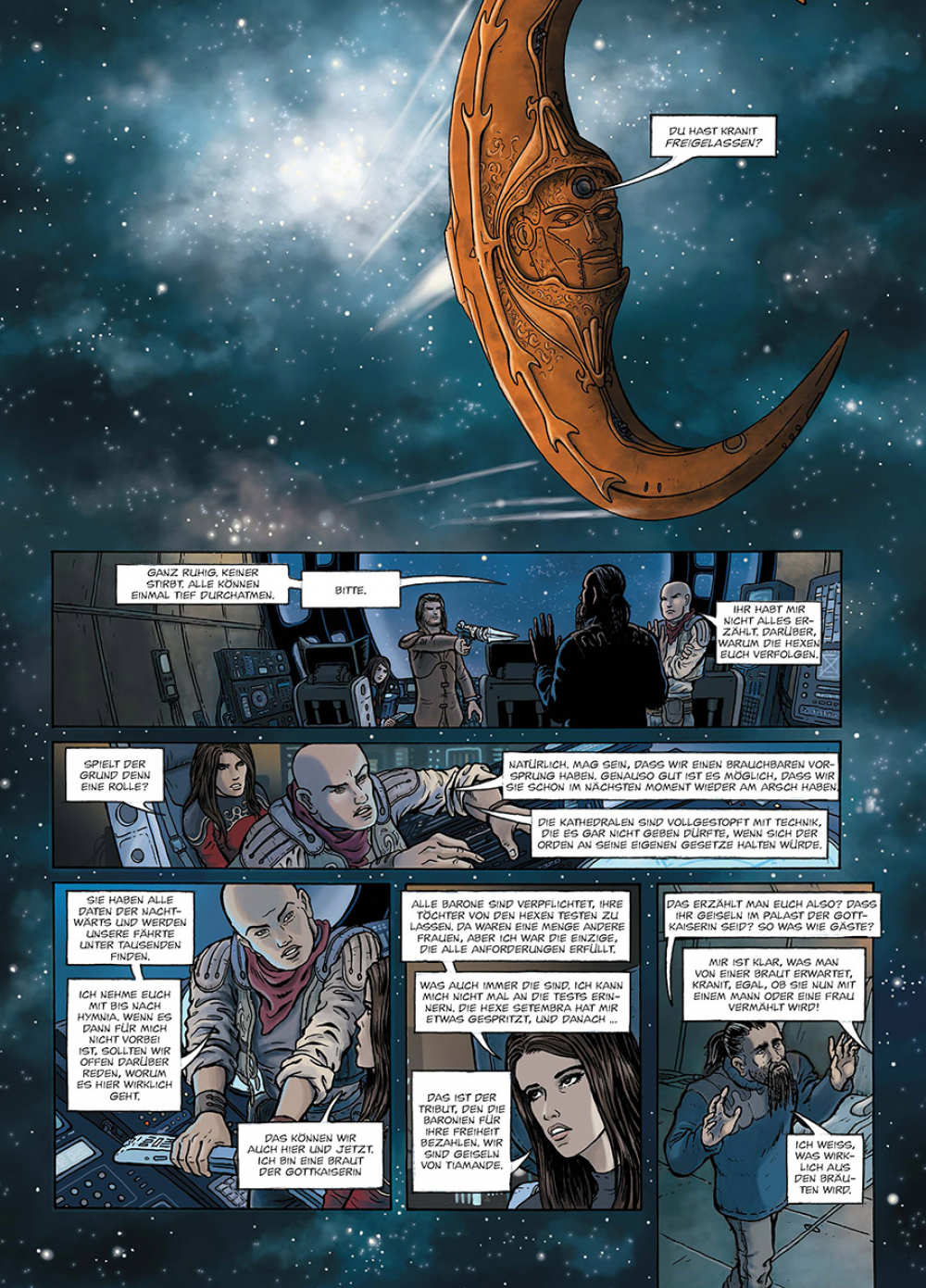 »Die Krone der Sterne« ist die dritte Comic-Adaption eines Romans von Kai Meyer bei Splitter! Das rasante Abenteuer der bunten Heldentruppe besticht durch seinen Mix aus Phantastik und Space Opera und wird vom bewährten Team aus Yann Krehl und Ralf Schlüter adaptiert.
