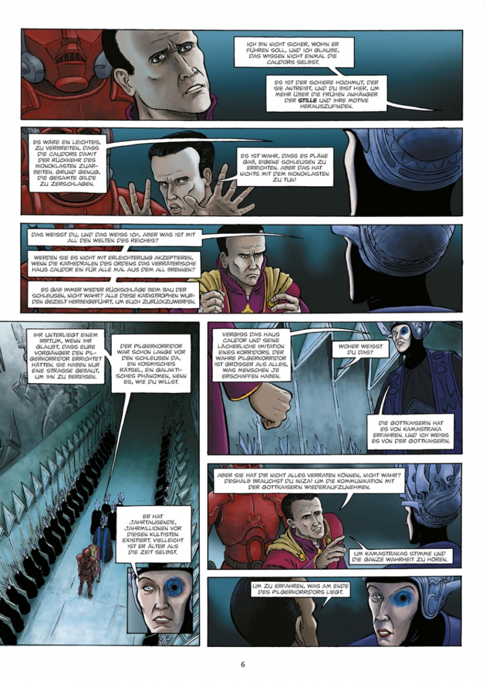 »Die Krone der Sterne« ist die dritte Comic-Adaption eines Romans von Kai Meyer bei Splitter! Das rasante Abenteuer der bunten Heldentruppe besticht durch seinen Mix aus Phantastik und Space Opera und wird vom bewährten Team aus Yann Krehl und Ralf Schlüter adaptiert.