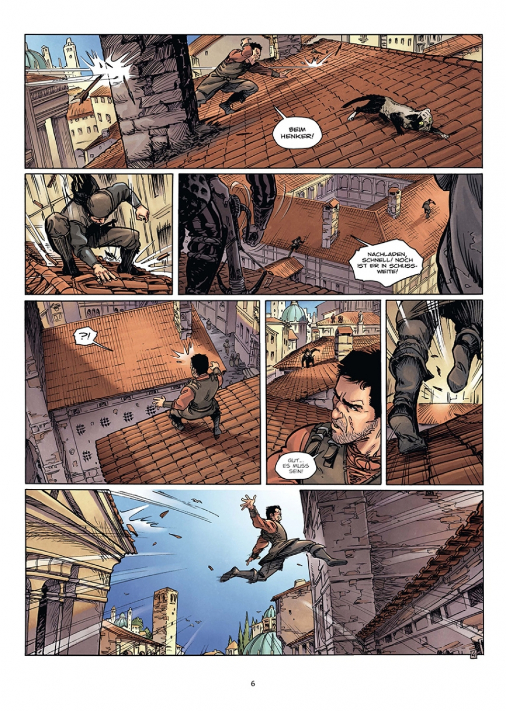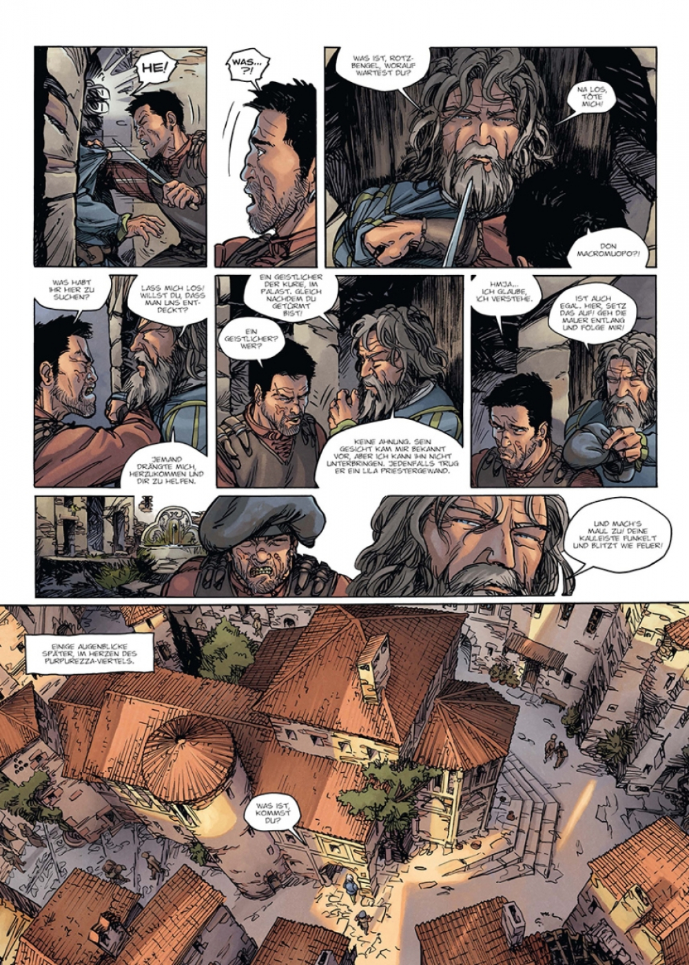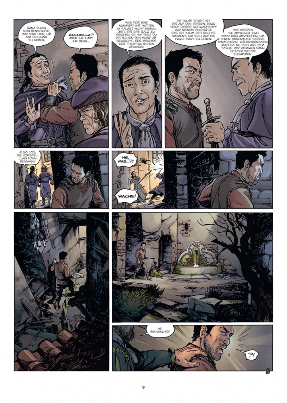 »Die Kunst des Krieges« ist ein Roman von Jean‐Philippe Jaworski aus dessen phantastischem »Alten Königreich«, adaptiert und grafisch umgesetzt von Frédéric Genêt (»Samurai«). Eine satte Mischung aus Mantel & Degen, Renaissance-Ambiente und reichlich Magie – nach dem Motto: Einer für alle, und alle für diesen einen.