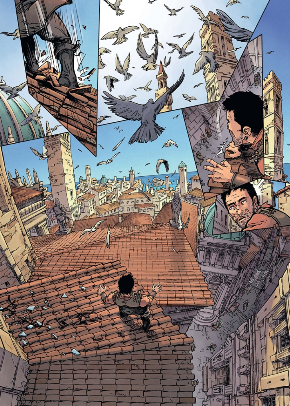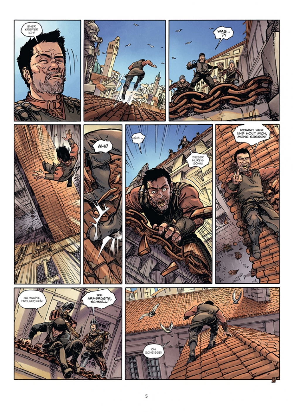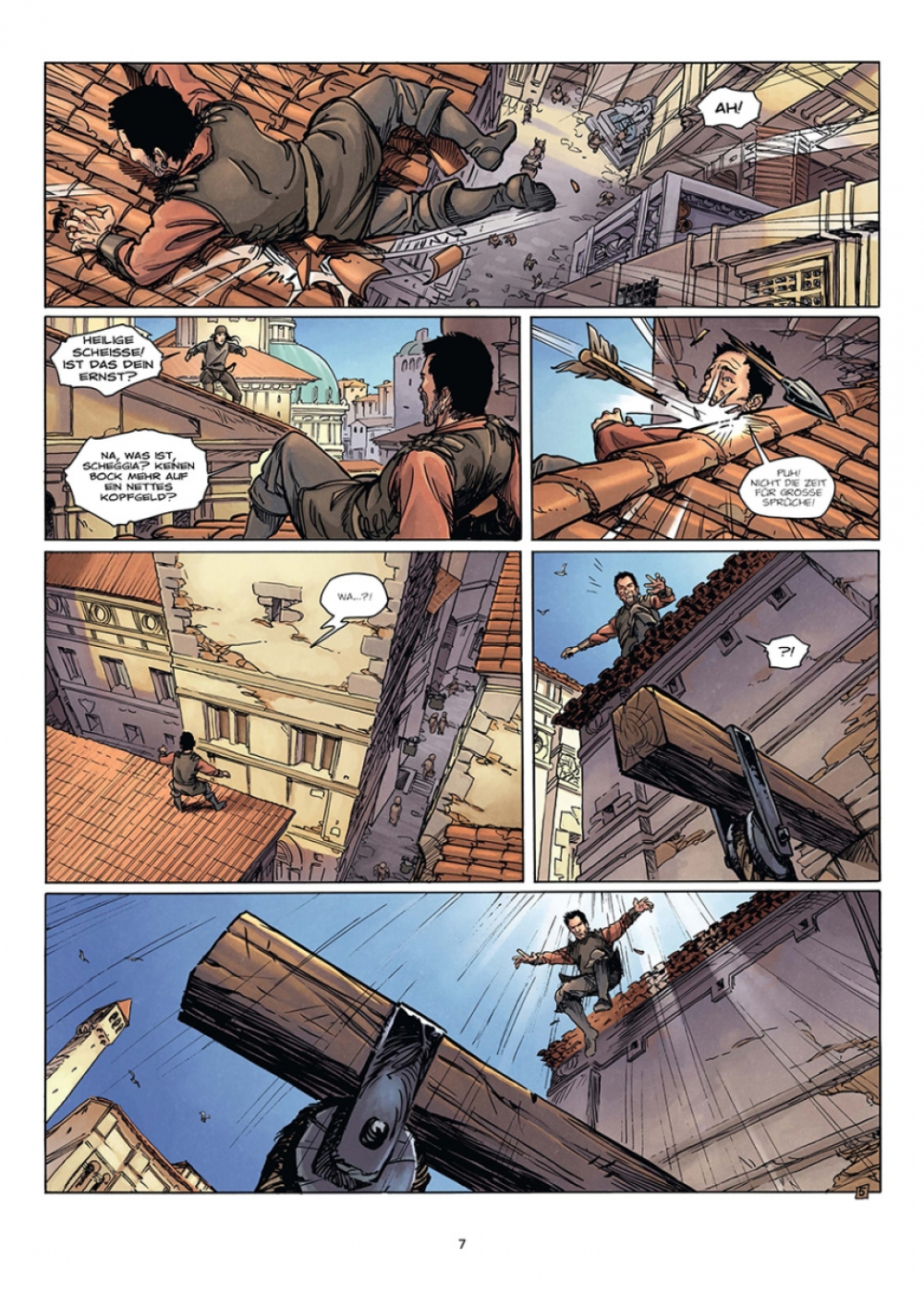 »Die Kunst des Krieges« ist ein Roman von Jean‐Philippe Jaworski aus dessen phantastischem »Alten Königreich«, adaptiert und grafisch umgesetzt von Frédéric Genêt (»Samurai«). Eine satte Mischung aus Mantel & Degen, Renaissance-Ambiente und reichlich Magie – nach dem Motto: Einer für alle, und alle für diesen einen.