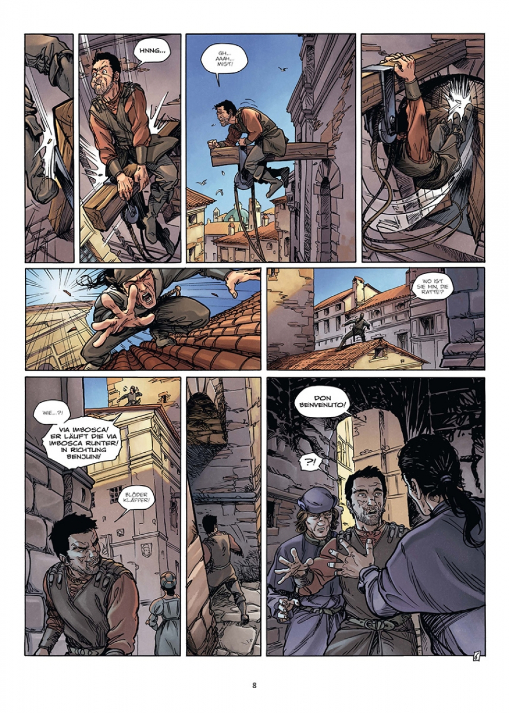 Vor langer Zeit war er ein Kind gewesen. Und der Schüler des größten Künstlers von Ciudalia. Sein Talent für die Malerei war offenkundig, doch Benvenuto schlug einen anderen Weg ein: Er machte das Töten zur Kunstform. Heute ist er nur noch ein einzelner Faden im großen Netz des Weltgeschehens, ein Faden, den viele gerne durchtrennen würden...