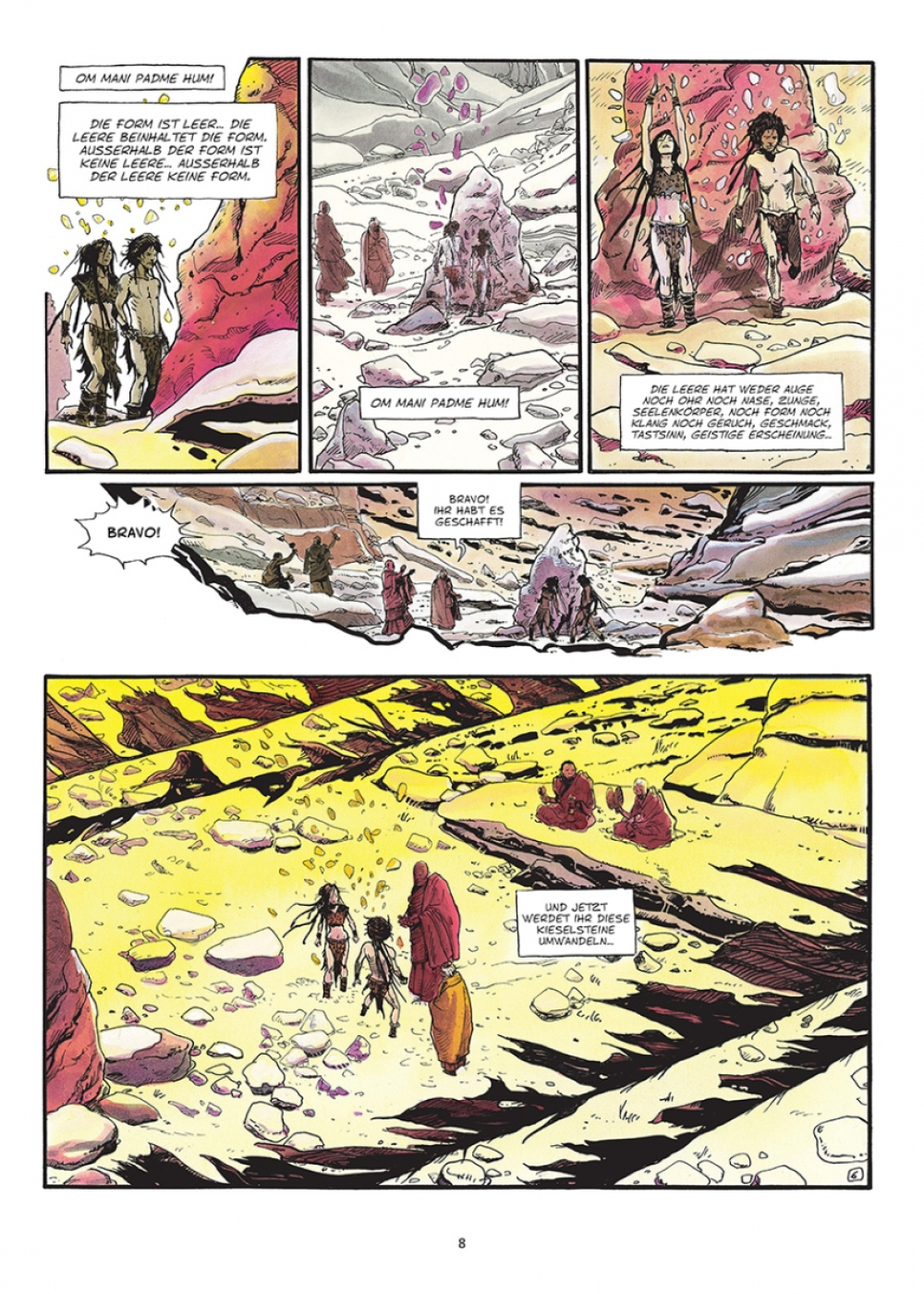 Erstmals zwischen 1989 und 1994 erschienen, war die erste Zusammenarbeit zwischen dem surrealistischen Mastermind Alejandro Jodorowsky und Zeichner Georges Bess. Später sollte »Juan Solo« (ebenfalls Splitter) folgen. Jodorowsky zeichnet in dem monumentalen Meisterwerk das Land Tibet als »Ort der Magie und Spiritualität« (SRF) und so entwickelt sich auch der »Der weiße Lama« mit jeder Seite zu einer geradezu rauschhaften Erfahrung.