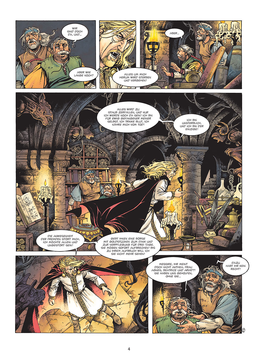Auf ihrer Flucht begegnet sie im Herzen des Waldes Hohenstein dem Grafen Colbus de Malemort, den ein düsteres Geheimnis umgibt. Denn Malemort ist ein Vampir und damit ebenso Zielscheibe der Verfolgung.