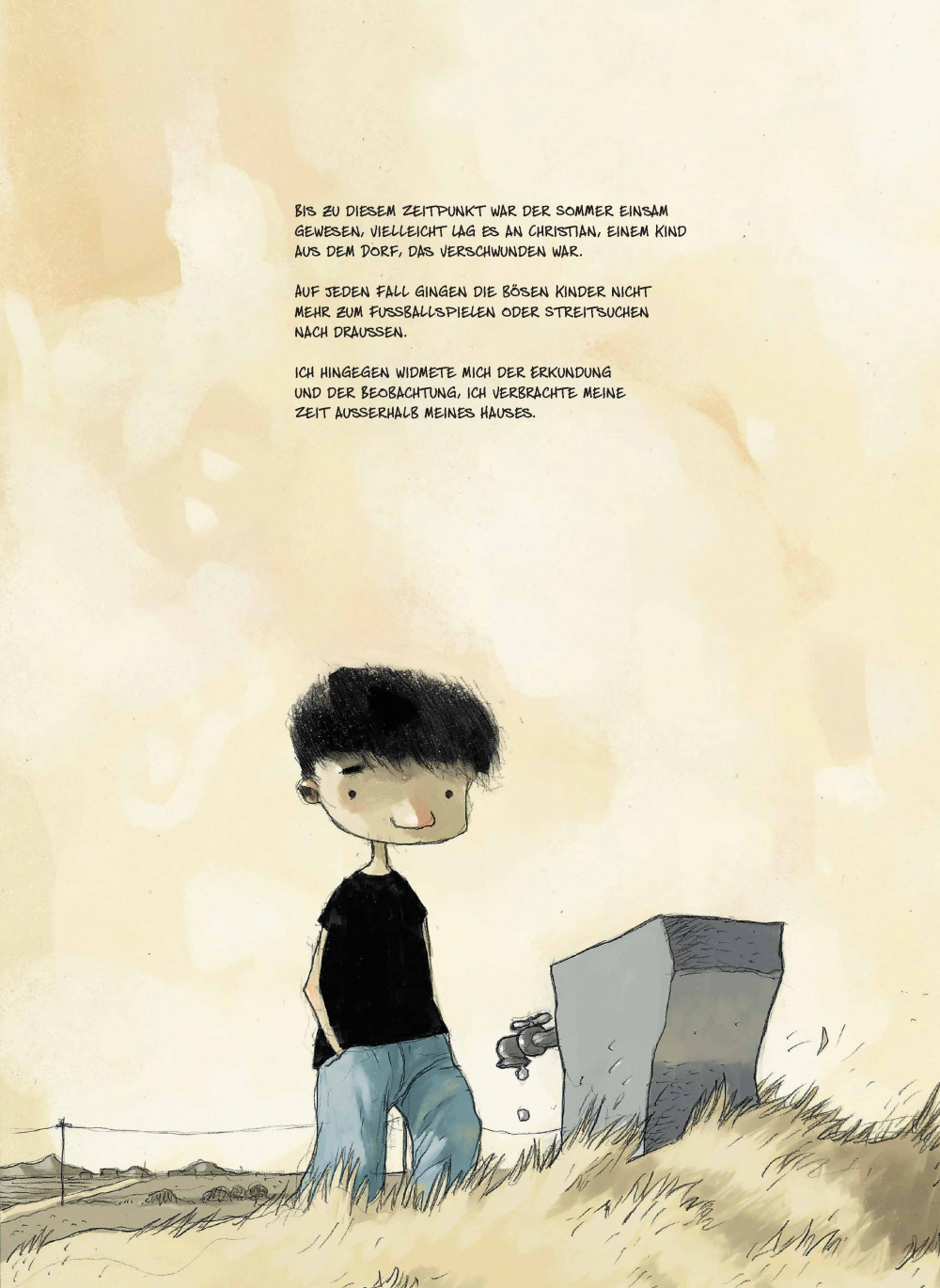 Ein Junge namens Christian ist verschwunden, und niemand in der Stadt geht mehr zum Spielen nach draußen … außer Polo, der lieber die großen Weiten der grünen Wiesen in seiner Umgebung erkundet. Dort trifft er auf Sophie, mit der er sich auf die Spuren des Geheimnisses um Christians Tod begibt, als sie seinen leblosen Körper mitten im Nirgendwo entdecken. Sie verbringen den Sommer damit, den Verfall des Leichnams auf einem alten Sofa zu beobachten, das irgendwie mit diesem verbunden zu sein scheint. Außerdem sollen sich zu dieser Geschichte seltsame Menschen und vielleicht sogar Werwölfe gesellen. Und so wabert ein ziemlich erstaunlicher Epilog am Horizont dieser Erzählung …
