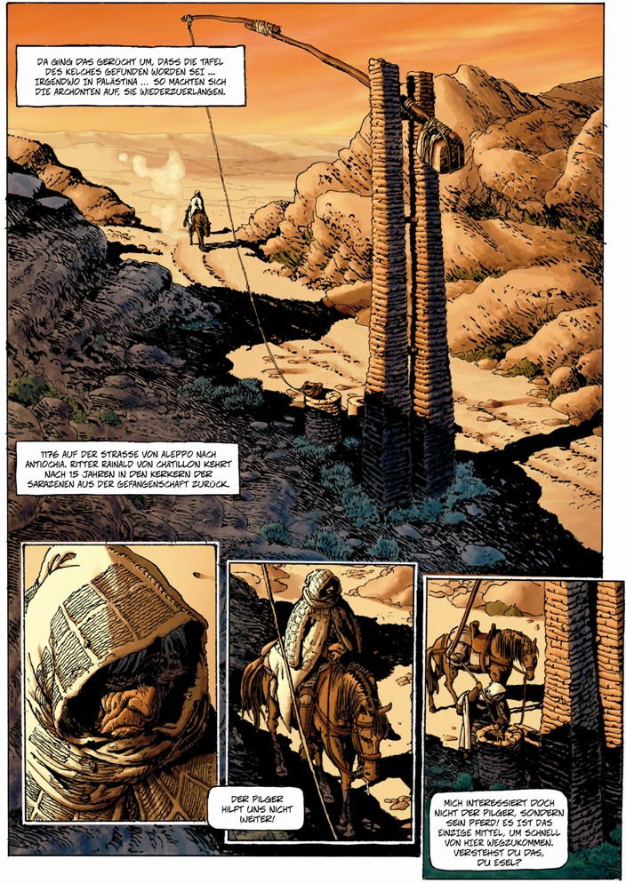 Berauscht von der Macht der Karten, überwerfen sich die Archonten und beschleunigen den Sturz des Weltreichs der Pharaonen. Dreizehn Jahrhunderte später machen sich eine mysteriöse junge Frau und ein Ritter auf die Spur einer der Tafeln, die früher im Besitz Moses war. Chrétien de Troyes, sieht in dieser Karte den Gral, der ihm keine Ruhe lässt...