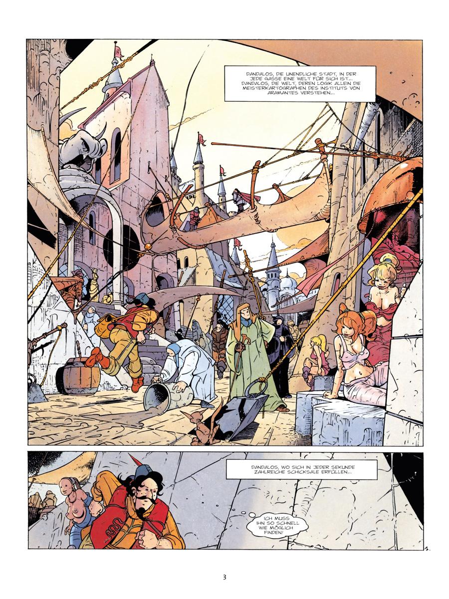 Im Institut von Aramantes widmet man sich der Aufgabe, diese verwirrende Welt zu erfassen und zu verstehen. Archim vom Felde, Abenteurer, Frauenheld und Meisterkartograph des Instituts, macht sich auf den Weg durch die schier endlosen Straßen von Dandalos und kommt dabei einer Verschwörung der Sarpientisten auf die Spur, einer Vereinigung, die eifersüchtig eigenes Wissen hütet und gleichzeitig versucht, den Meisterkartographen möglichst viel davon zu stehlen.