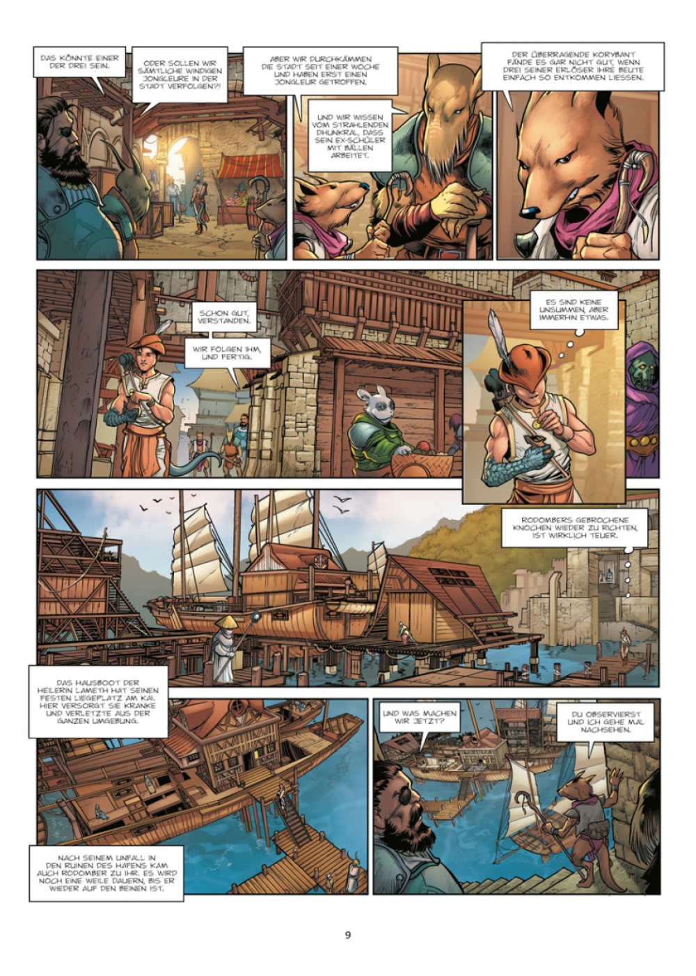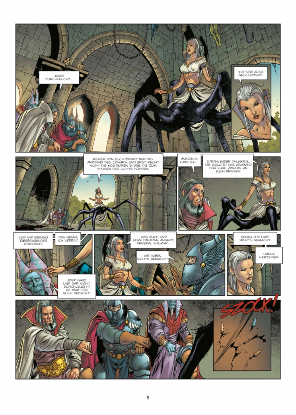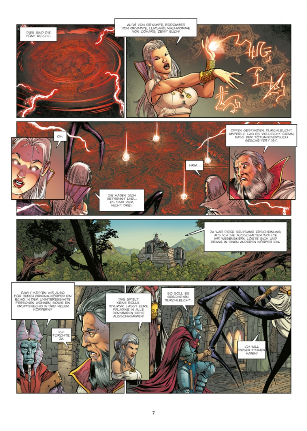 Rodomber ist es gelungen, den Titanen des Lichts zu finden, der demjenigen, der ihn besitzt, die vollständige Herrschaft über die fünf Reiche verleiht. Luksand und Altaï führten ihn bis zum Flusshafen von Almandor. Dort halten sie sich mit kleinen Arbeiten über Wasser, um die Behandlung des verletzten Rodomber zu bezahlen. Doch die Jäger vom Orden des Lichts sind ihnen bereits auf den Fersen...