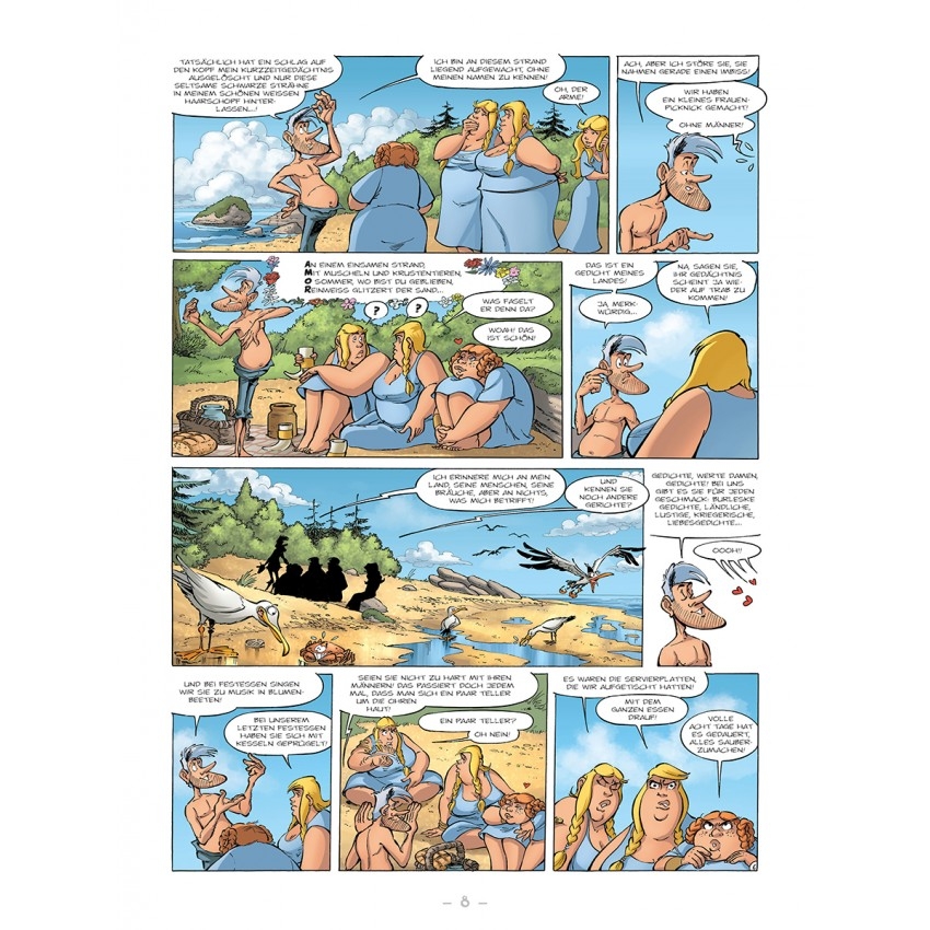 Der vielseitige Michel Rodrigue, Comic-Autor und -Zeichner sowie Rugbyspieler und Wahl-Schotte, hat mit seiner verrückten Wikingersaga ein pralles Vergnügen für Comic-Kenner geschaffen. Aber nicht bloß »Thorgal«- oder »XIII«-Experten kommen hier auf ihre Kosten – die Suche der wilden Nordmänner nach der sogenannten »Zivilisation« macht einfach nur Spaß! Auf die »Schlümpfe« von Rosinski dagegen werden wir wohl weiterhin warten müssen...