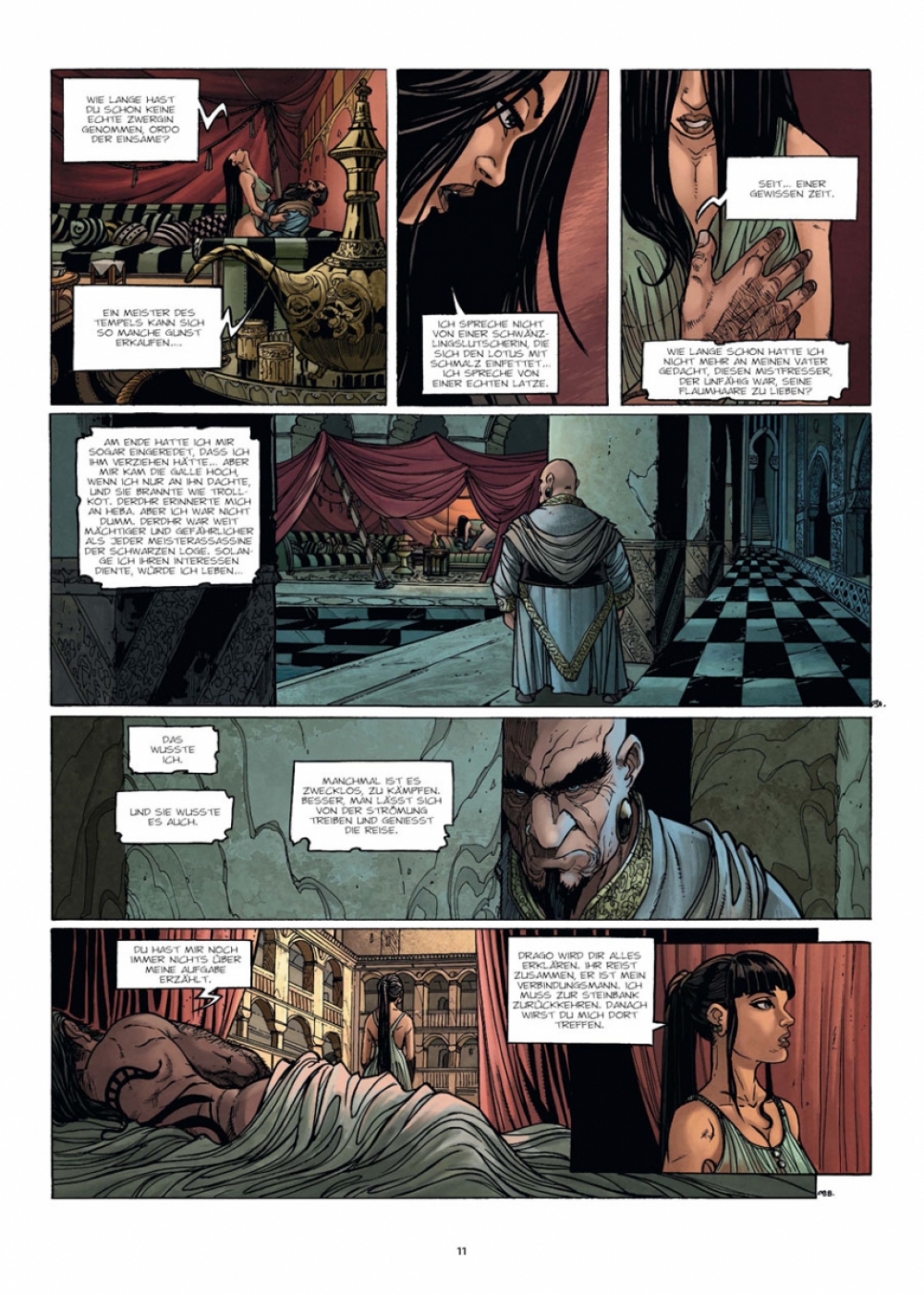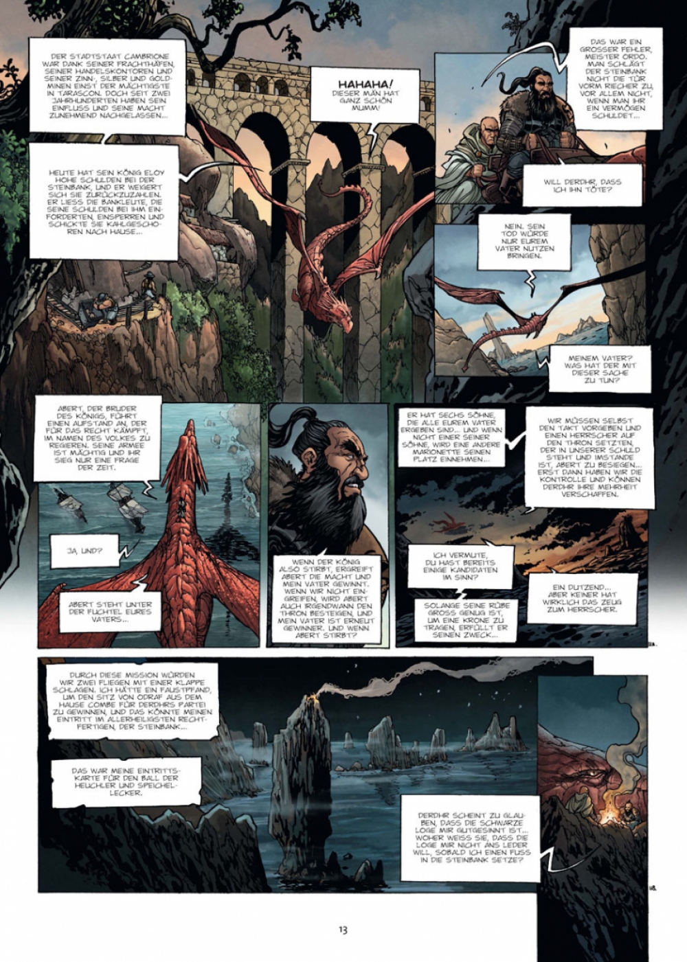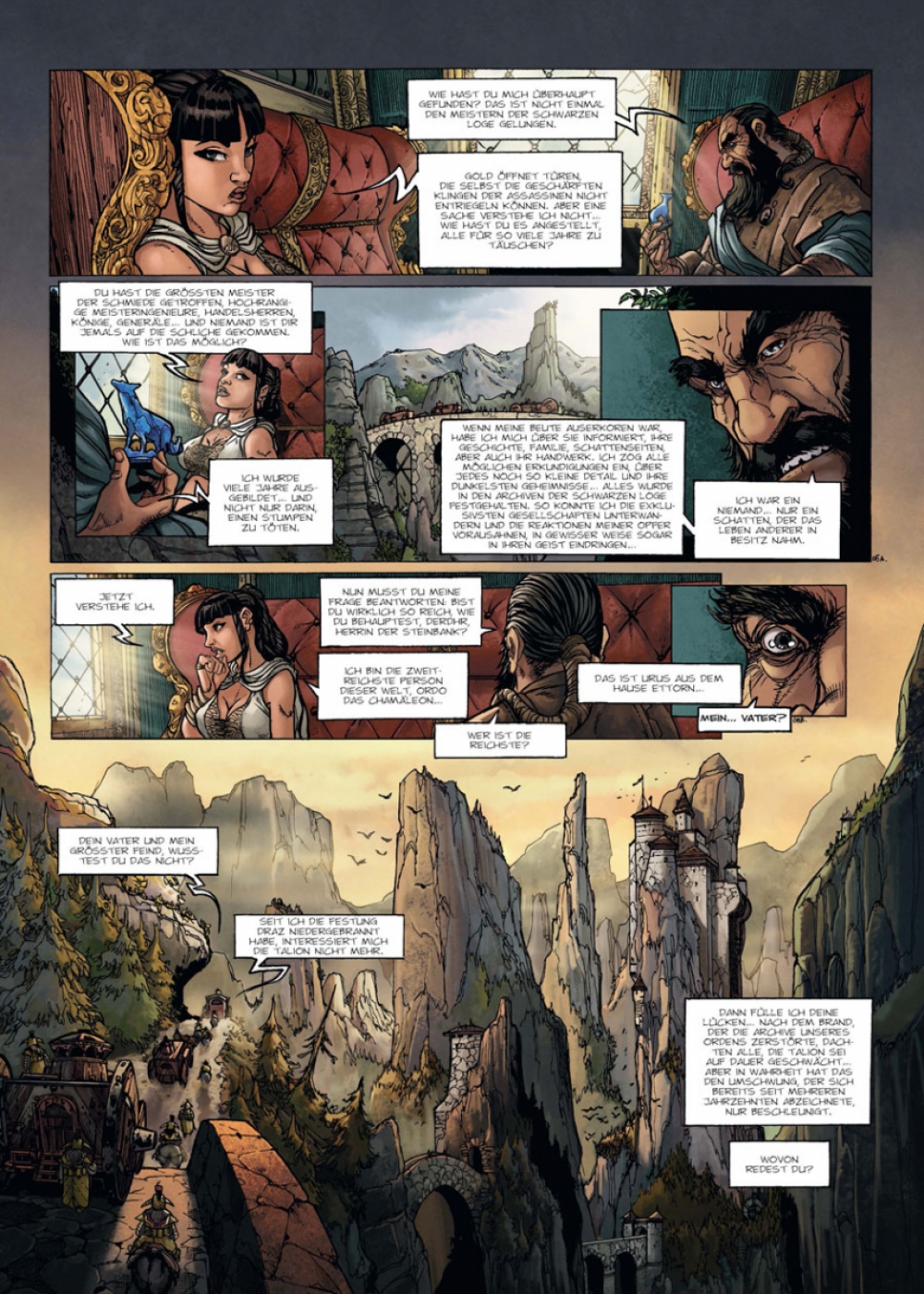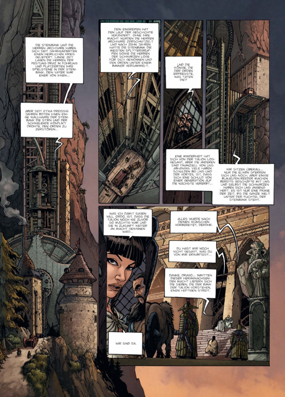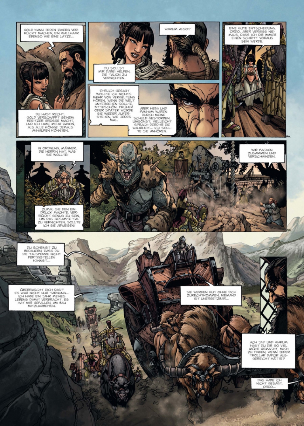 »Die Saga der Zwerge« ist eine Konzeptserie, die ähnlich wie »Elfen« aus in sich abgeschlossenen Einzelbänden besteht, in denen unterschiedliche Schicksale und Aspekte verschiedener Völkerschaften erzählt werden, die zusammengenommen dennoch ein einziges, großes Panorama – hier: der Zwergenschaft – ergeben. Für den zweiten Band zeichnen wie auch im ersten Zyklus Nicolas Jarry (»Götterdämmerung«, »Troja«) und Stéphane Créty verantwortlich.