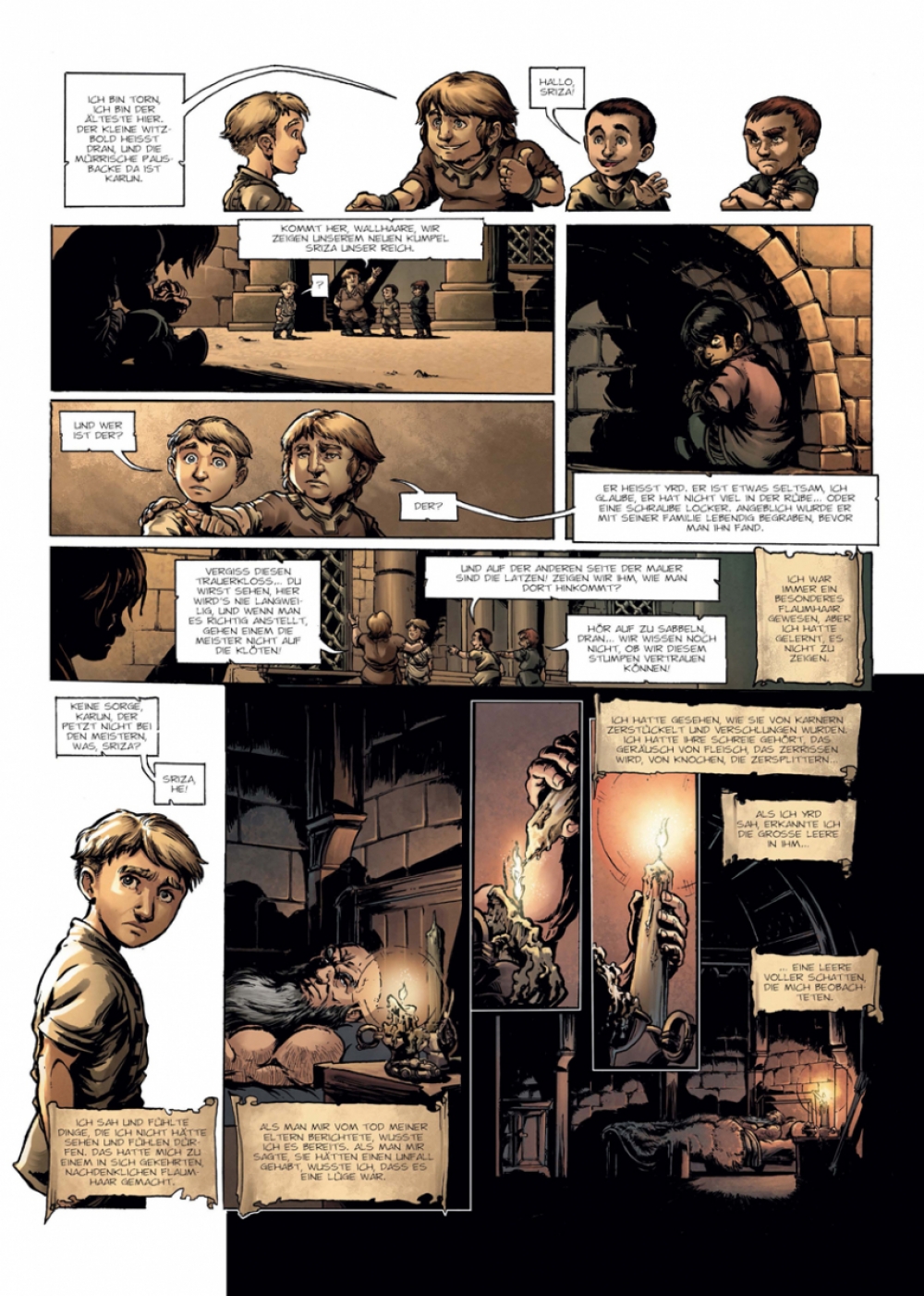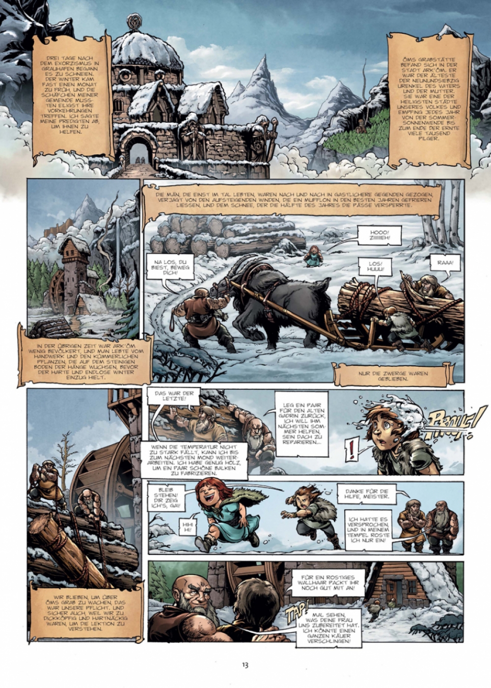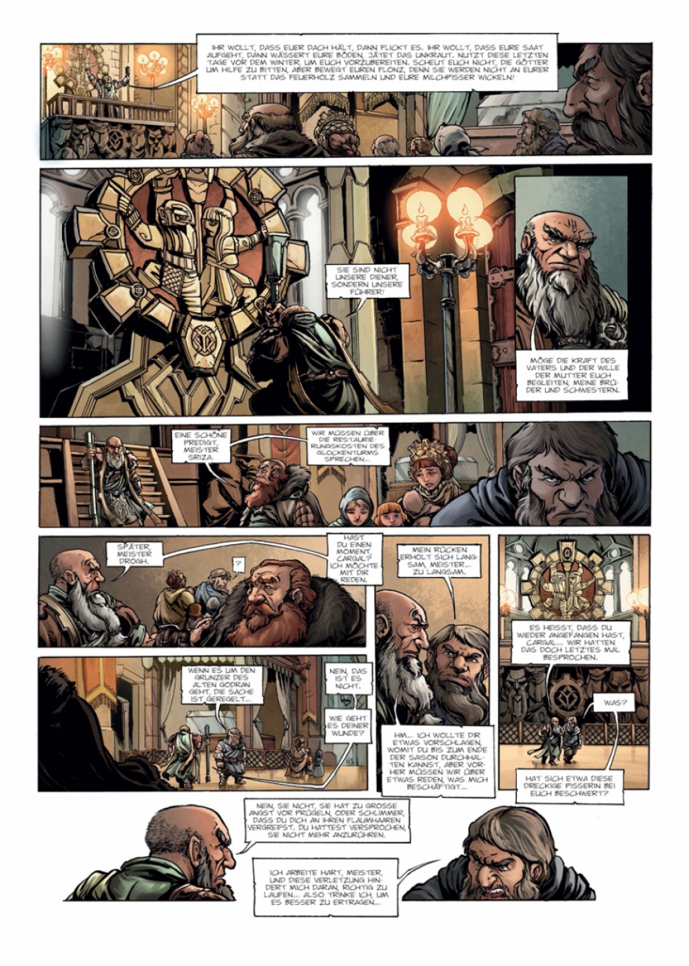 »Die Saga der Zwerge« ist eine Konzeptserie, die ähnlich wie »Elfen« aus in sich abgeschlossenen Einzelbänden besteht, in denen unterschiedliche Schicksale und Aspekte verschiedener Völkerschaften erzählt werden, die zusammengenommen dennoch ein einziges, großes Panorama – hier: der Zwergenschaft – ergeben. Für den dritten Band tut sich Nicolas Jarry mit Olivier Héban und Deplano zusammen.