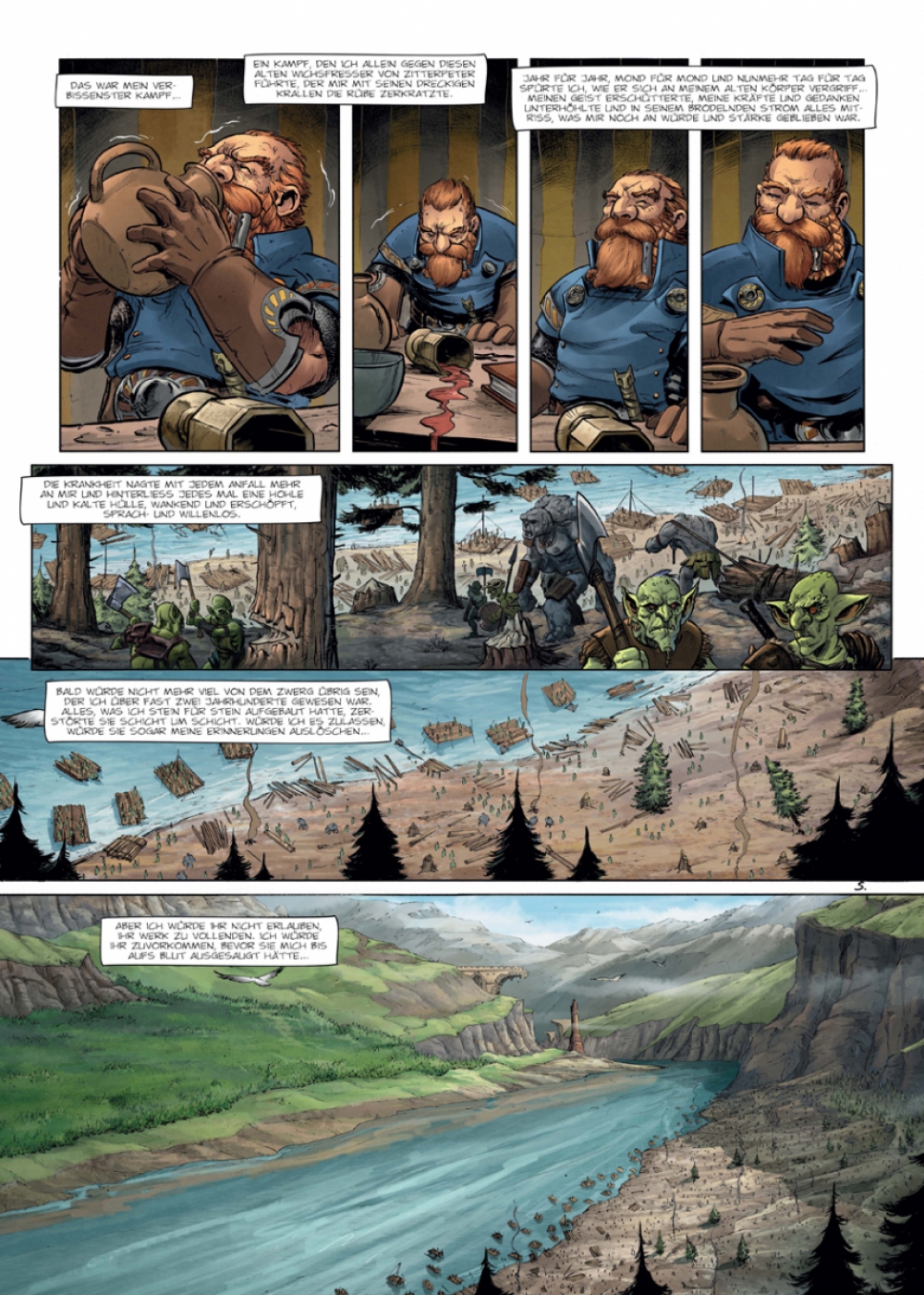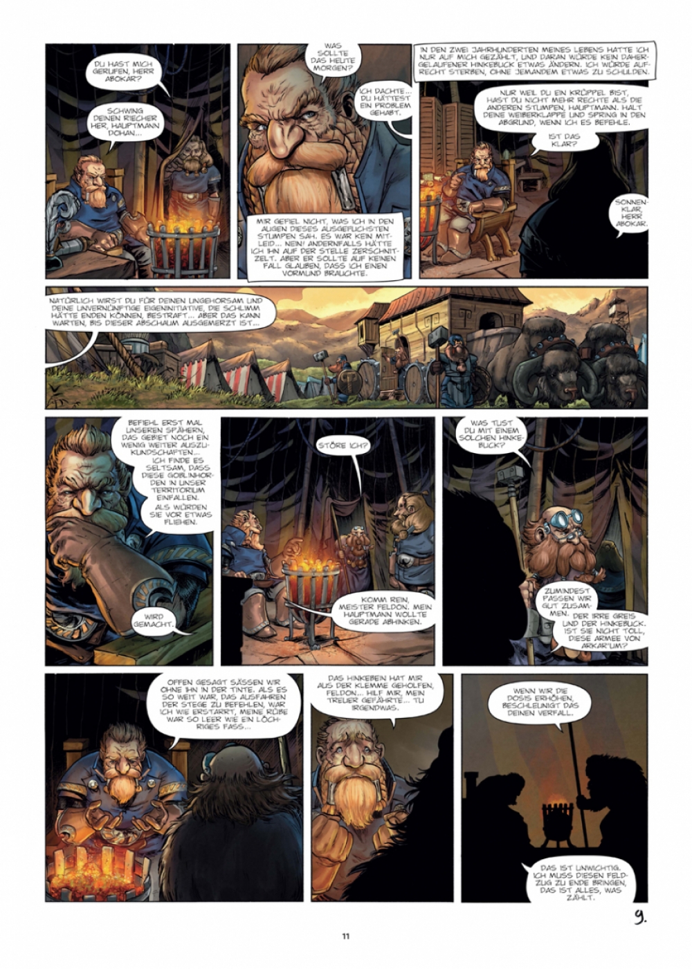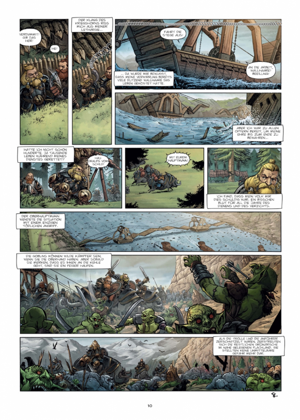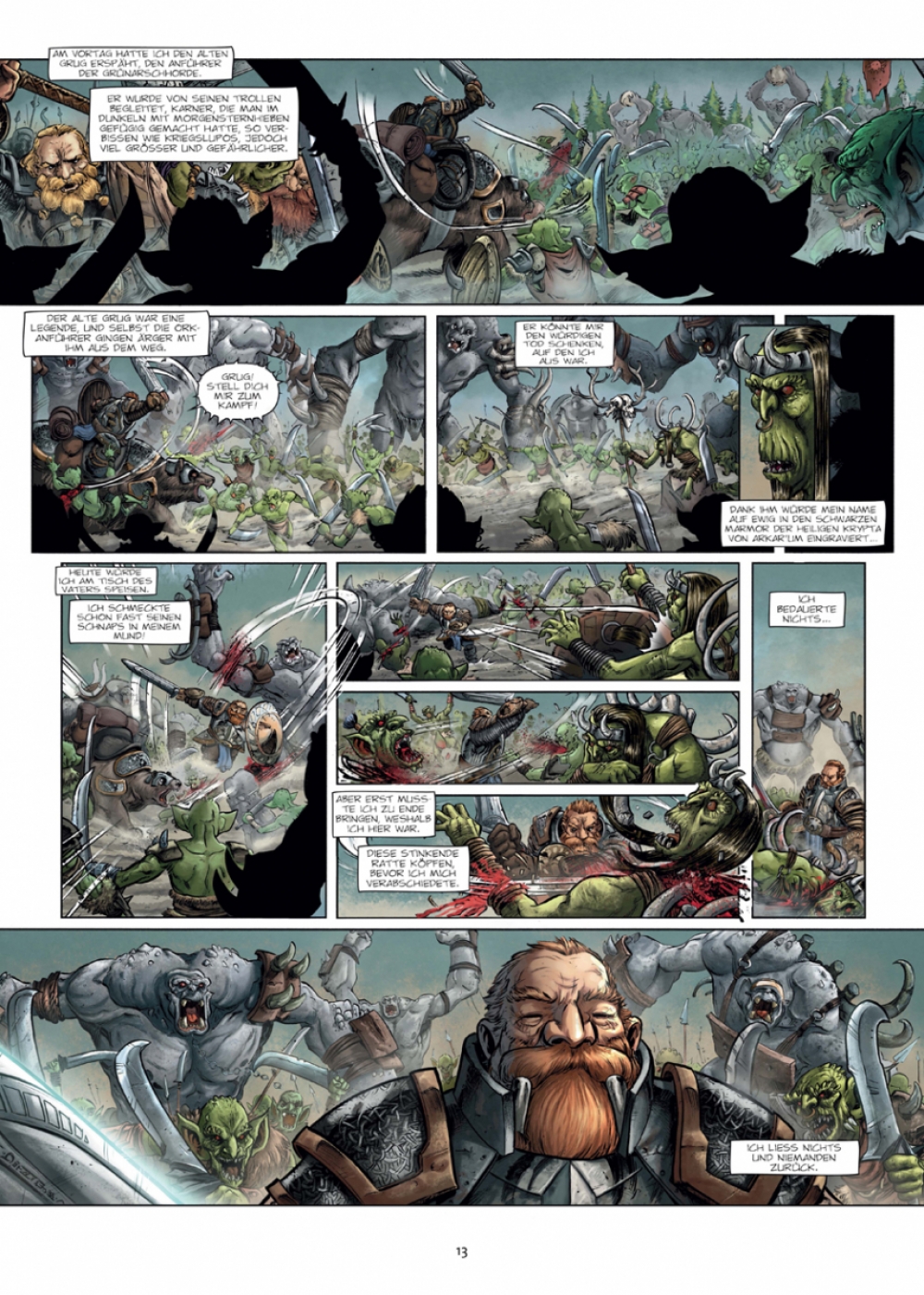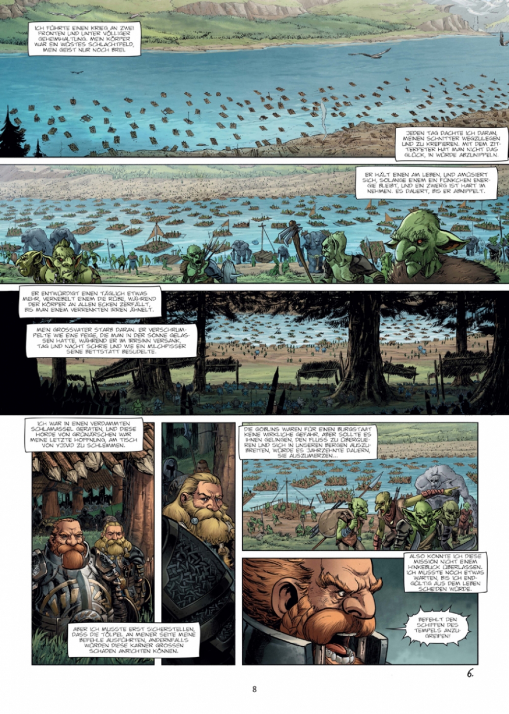 »Die Saga der Zwerge« ist eine Konzeptserie, die ähnlich wie »Elfen« aus in sich abgeschlossenen Einzelbänden besteht, in denen unterschiedliche Schicksale und Aspekte verschiedener Völkerschaften erzählt werden, die zusammengenommen dennoch ein einziges, großes Panorama – hier: der Zwergenschaft – ergeben. Für den dritten Band tut sich Nicolas Jarry mit Olivier Héban und Deplano zusammen.