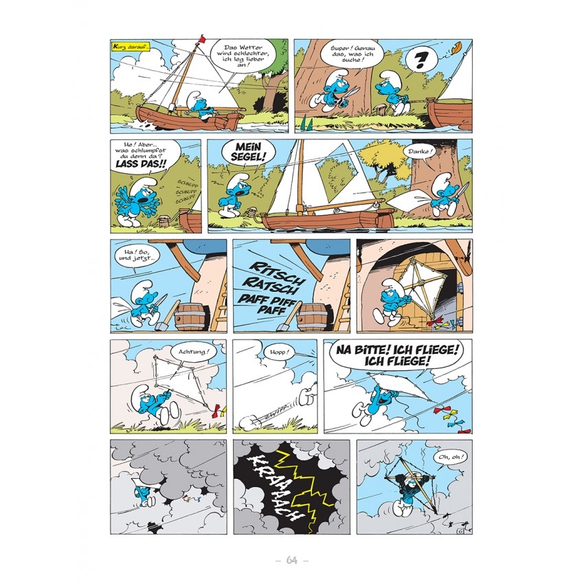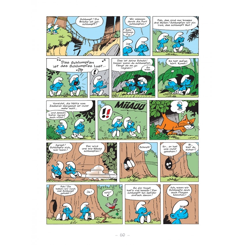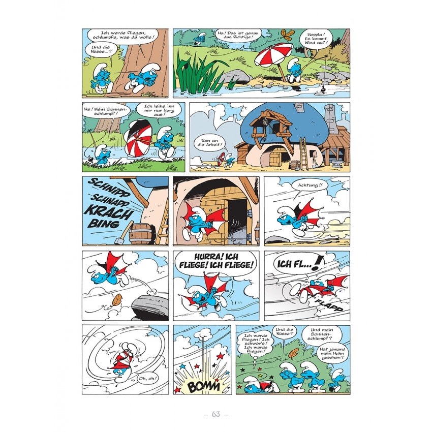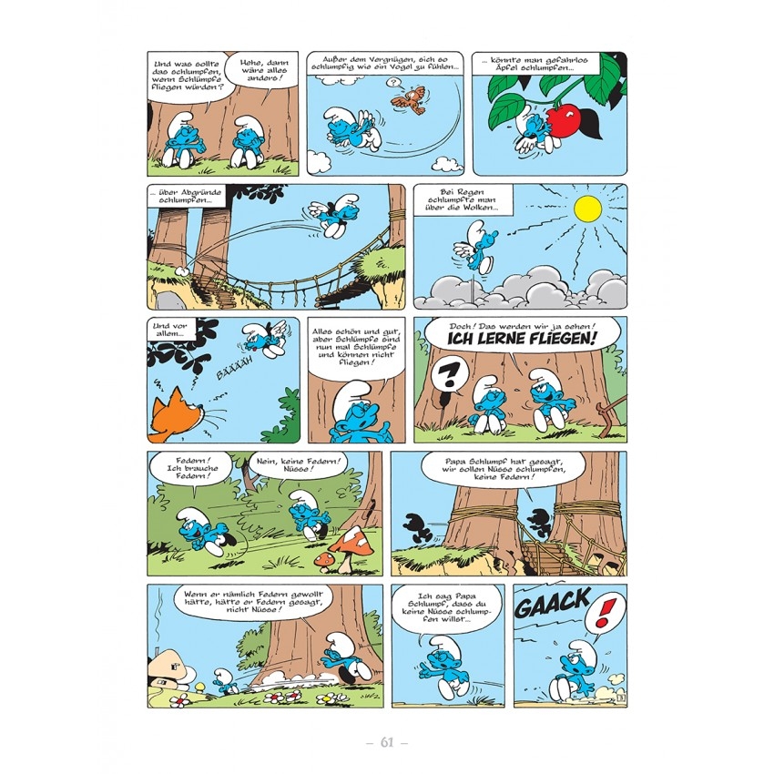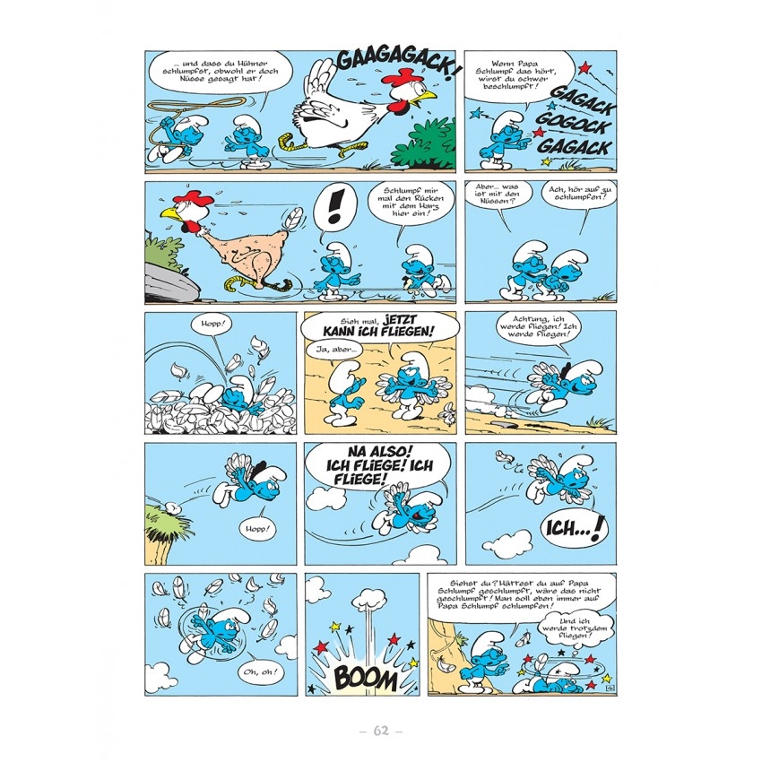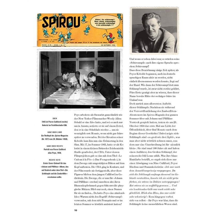 Auch Zwerge haben klein angefangen, selbst wenn sie sich innerhalb weniger Jahre zu einem Riesenerfolg mauserten. Als der Comic-Magier Peyo sie 1958 als Komparsen für seinen Ritter-Funny »Johann und Pfiffikus« kreierte, mussten sie noch achtgeben, dass niemand aus Versehen über sie stolperte, und trotzdem war ihr Charme auf Anhieb unübersehbar. In kürzester Zeit wurden sie zu Comic-Stars mit einer eigenen Reihe, bevölkerten bald zahllose Kinderzimmer als kleine Hartgummifiguren, stürmten die Hitparaden und eroberten erst den TV-Bildschirm und dann auch die große Kinoleinwand. Heutzutage hat wohl jede(r) schon mal von den Schlümpfen gehört und erkennt einen, sobald sie oder er ihn sieht. Kurios ist bloß: Beileibe nicht jeder Schlumpf-Fan weiß, wie diese Erfolgsstory einmal begann. Und selbst die, die schon alles gesehen zu haben glauben, werden kaum die allerersten Schlumpf-Comics im Zwergenformat kennen. Oder sich an die frühen Fernsehauftritte der blauen Gnome Anfang der 60er-Jahre erinnern. Höchste Zeit also für eine große, umfassende Kompaktausgabe – mit vielen Hintergrundinformationen, reichlich Bonusmaterial und zahlreichen, seltenen Bilddokumenten. Sowie natürlich all den klasssichen Abenteuern der Schlümpfe, die ihren Charme bis heute nicht verloren haben. Mit einem Wort: eine Riesensache, so viel schlumpft fest!
