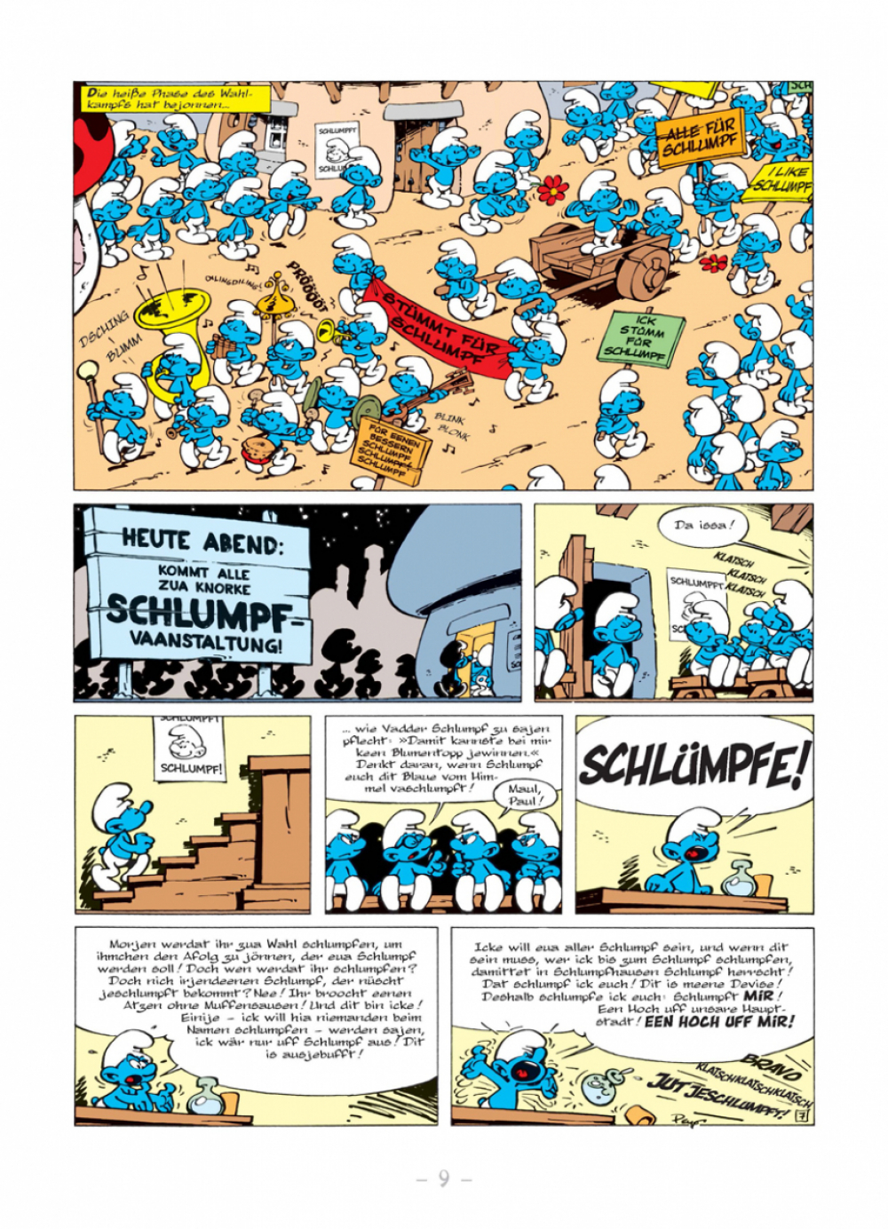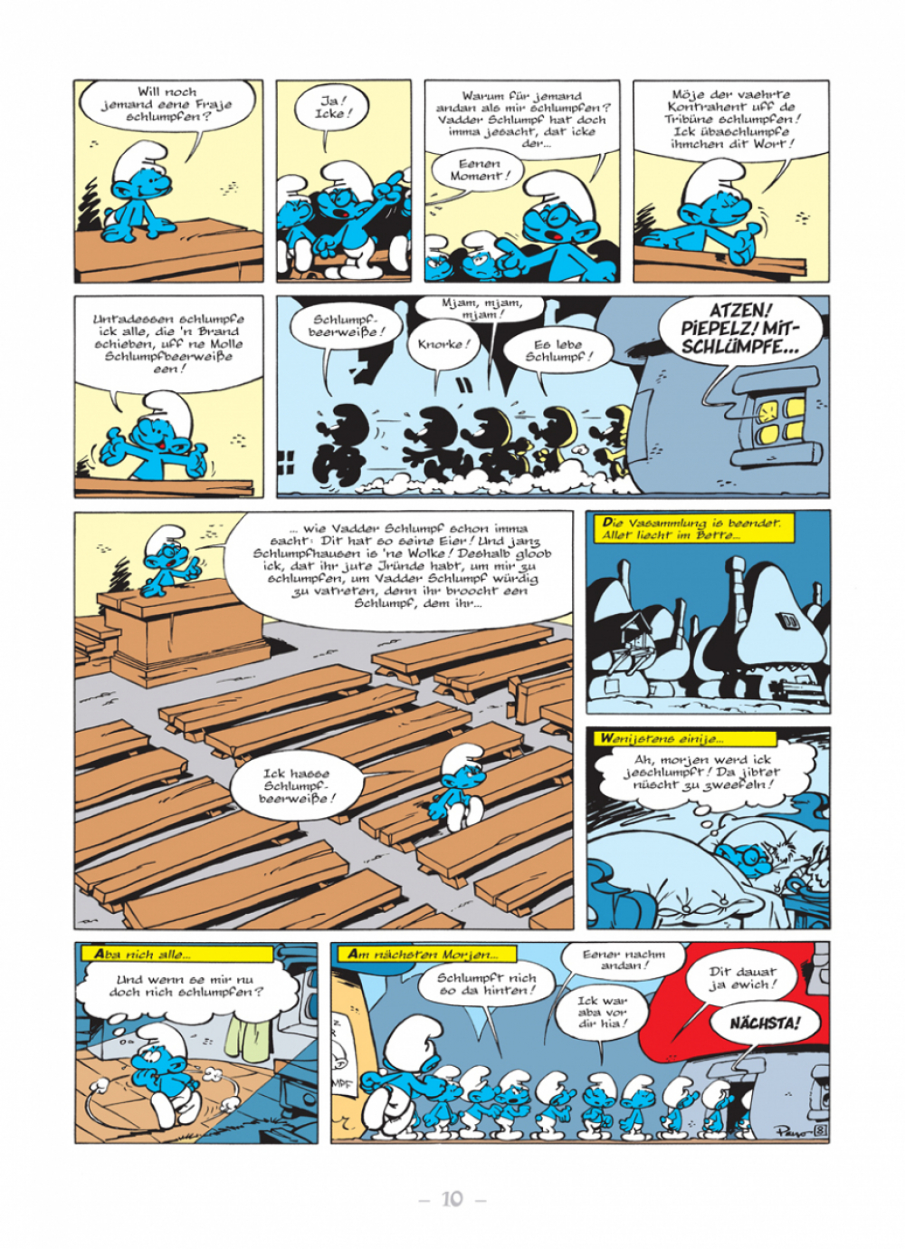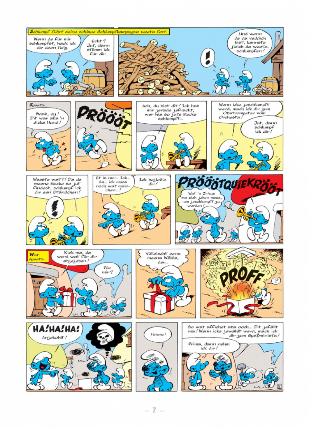 »Die Schlümpfe« nach Berliner Schnauze! Für alle Berliner und solche, die es werden wollen, gibt es zum ersten Mal ein Abenteuer mit unseren Lieblingswichteln jetzt in der Sprache der Hauptstadt zu lesen.