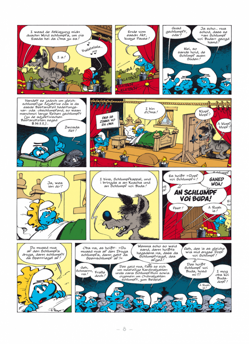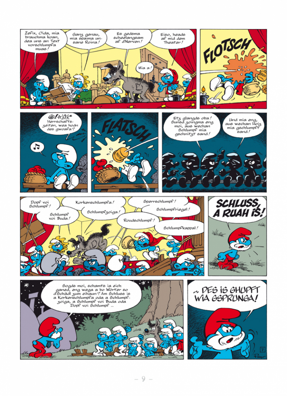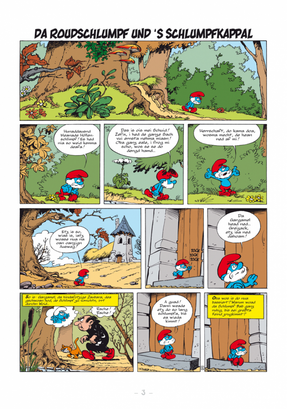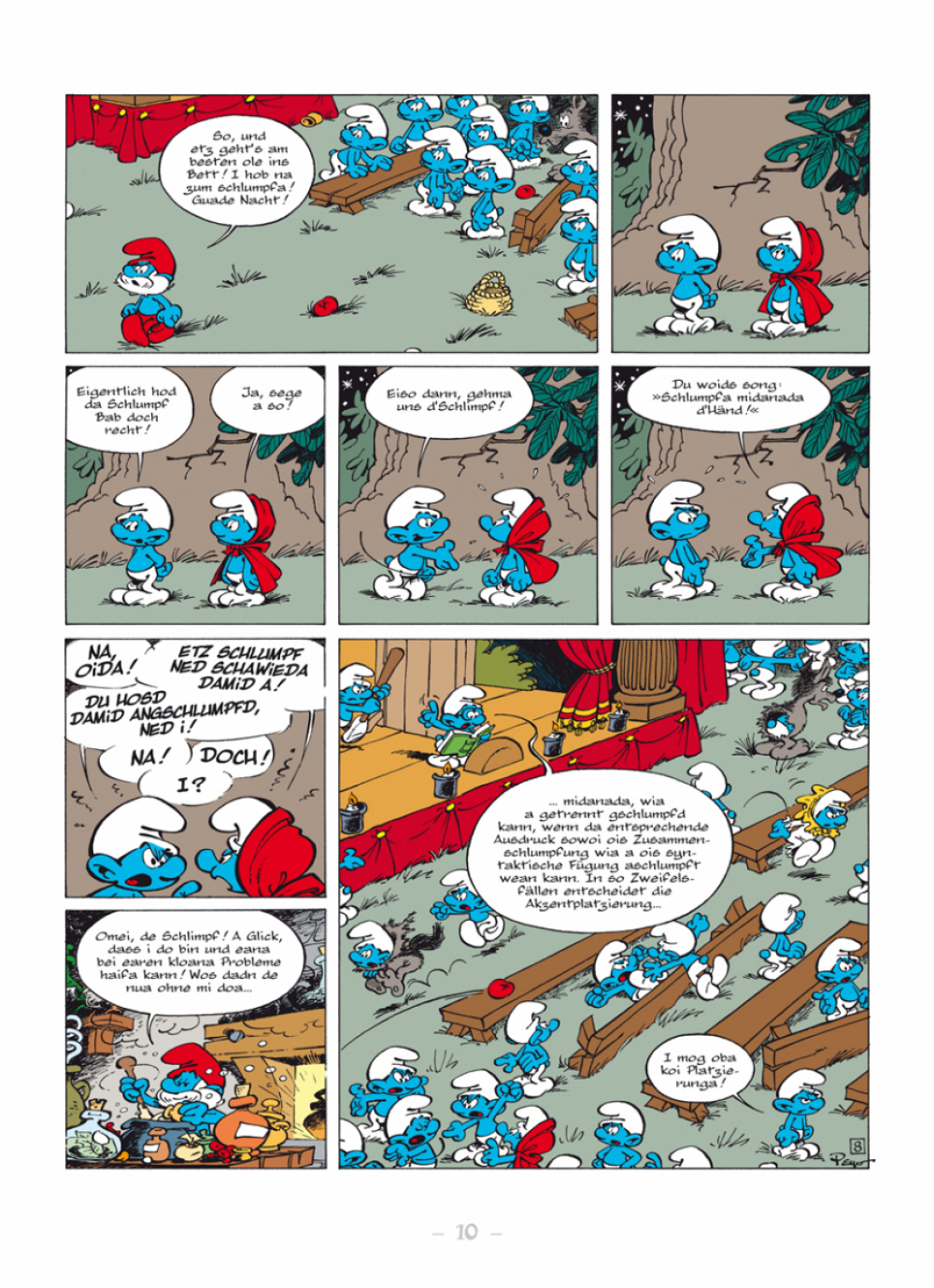 Midn im Boarischn Woid lem de Schlimpf. Normalaweis vodrongase recht guad, oba doch ren de Schlimpf ausn Norden a bissl andas ois de Schlimpf im Südn. Natürlich is do a Streitarei scha voagseng und da Bab Schlumpf woas ned weida.