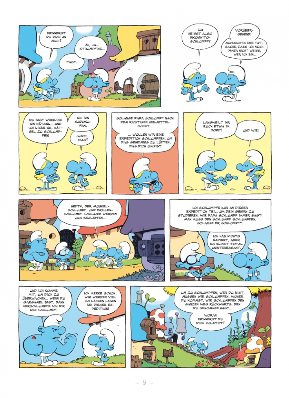 Ein neuer Schlumpf ist aus heiterem Himmel gefallen – dabei ist kein Storch in Sicht! Noch seltsamer: Dieser Schlumpf versteht die Schlumpfsprache nicht und kann sich an nichts erinnern. Das macht die Eingliederung ins Schlumpfdorf nicht gerade einfach… hindert den Neuzugang aber in keiner Weise daran, sich auf der Suche nach seiner Identität in ein schlumpfiges Abenteuer zu stürzen!