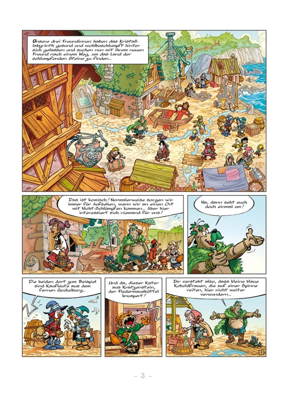 Und inzwischen haben die Schlümpfe Gesellschaft bekommen: Ein Dorf voller weiblicher Schlümpfe! Die Bände der Serie »Die Schlümpfe und das verlorene Dorf« erzählen muntere Geschichten aus dieser neuen Welt und beweisen, dass Mädchen-Schlümpfe mindestens genauso taff sind wie die Jungs – wenn nicht gar taffer!