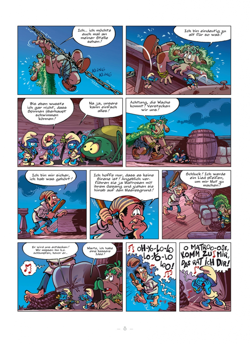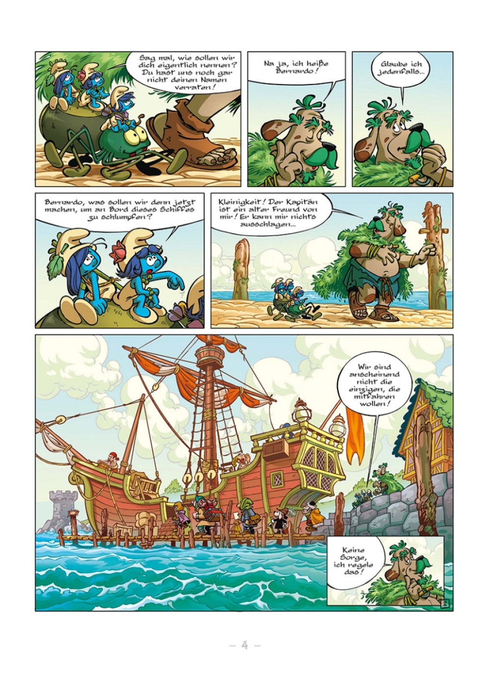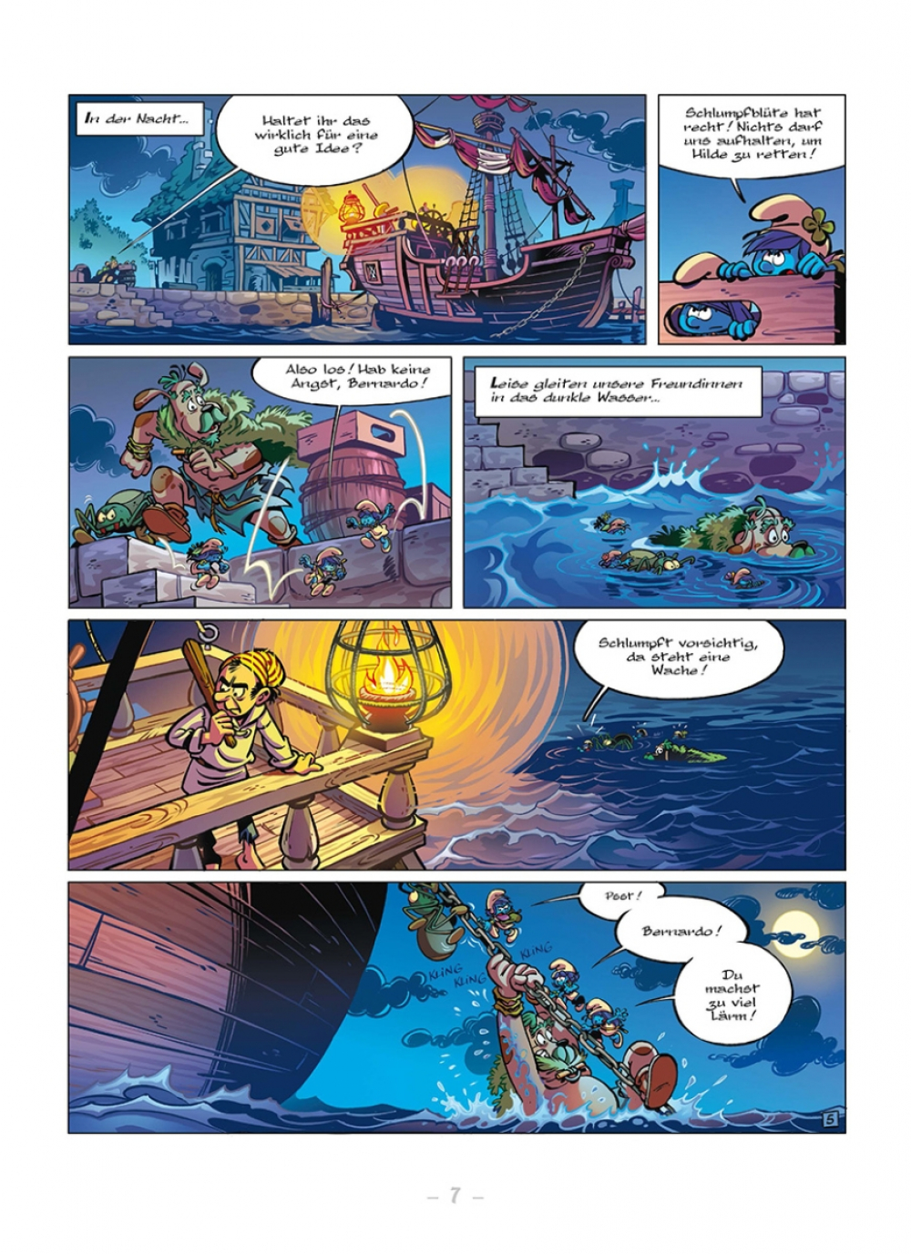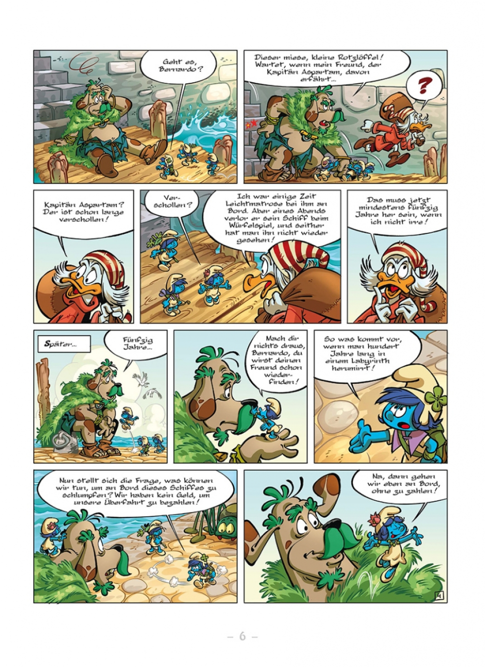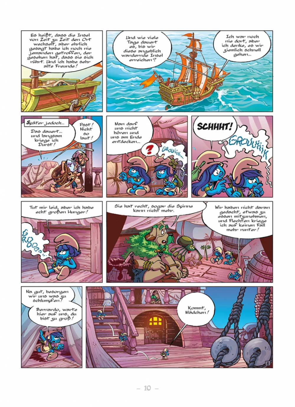 Minze und ihre Freunde sind immer noch auf der Suche nach dem Land der Schlumpfsteine. Dafür müssen sie mit ihrem neuen Freund Bernardo das Meer überqueren... leichter gesagt als getan! Denn die Bewohner des seltsamen Ortes, an dem sie gelandet sind, mögen zwar keine Menschen sein, aber sie verlangen trotzdem Bezahlung für die Überfahrt. Unsere Heldinnen müssen als blinde Passagierinnen an Bord gehen, wenn sie ihr Abenteuer fortsetzen wollen.