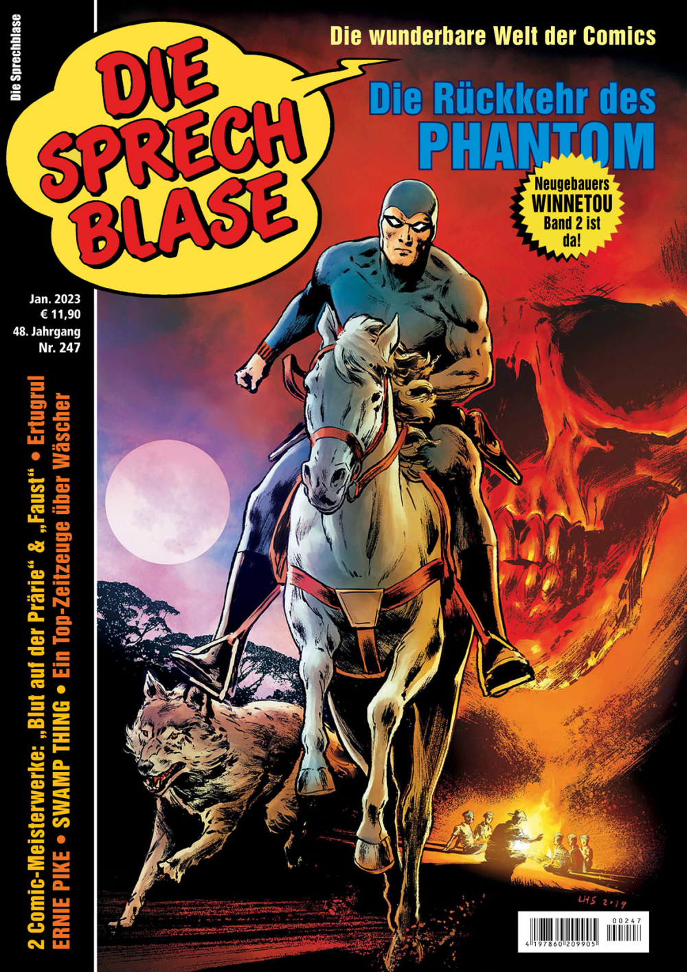 Es erwartet euch eine Ausgabe voller Highlights! Anlässlich dreier aktueller Publikationen rollen wir die Geschichte des Phantoms auf. Außerdem haben wir 2 einzigartige Comics am Start: „Blut auf der Prärie“ und „Doktor Faust“.