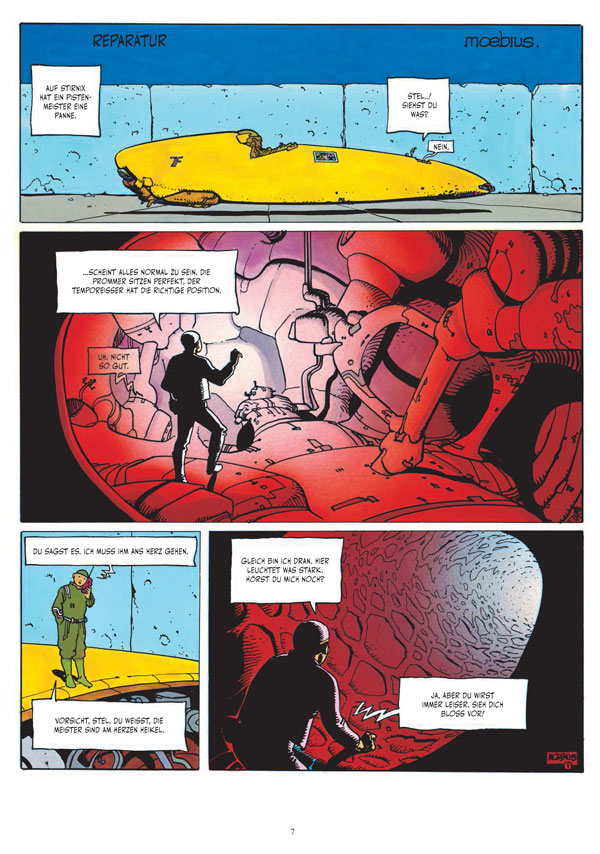 Mit dem Aufbruch von Stel, dem genialen Mechaniker, und seinem Gefährten Atan zu dem Paradies-Planeten Edena begann 1985 ein neues Comic-Zeitalter. Poetisch und prophetisch sind die klaren, kraftvollen Bilder, visionär ist die Botschaft. Für diese Saga erfand Moebius den Zeichenstil der Ligne Claire neu: der reine, traumwandlerisch sichere Strich war von da an das Markenzeichen des Meisters. „Wir werden entweder unser Verhalten und unsere Überzeugungen ändern oder umkommen“, lautet das Motto des Autors. Die sechs Bände des Zyklus sind eine heitere Hommage an die Selbstheilungskräfte der Menschheit.