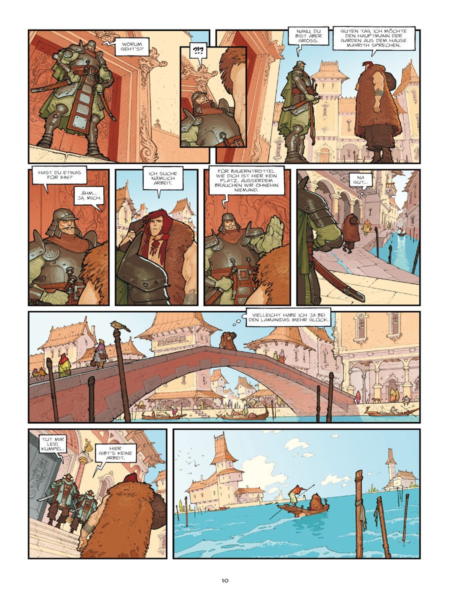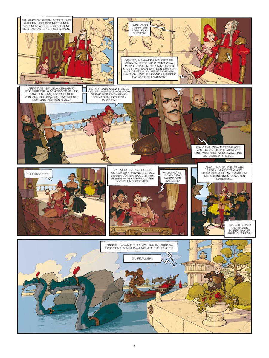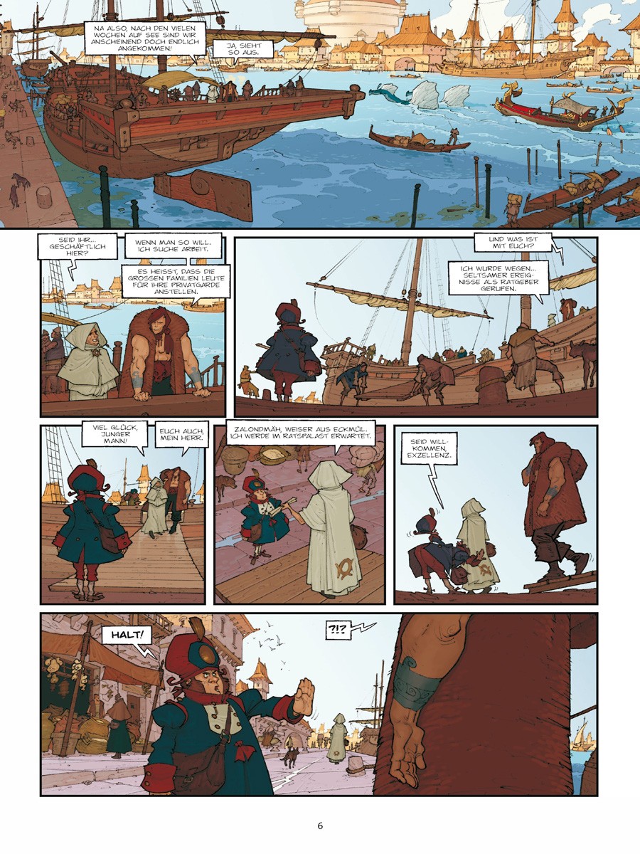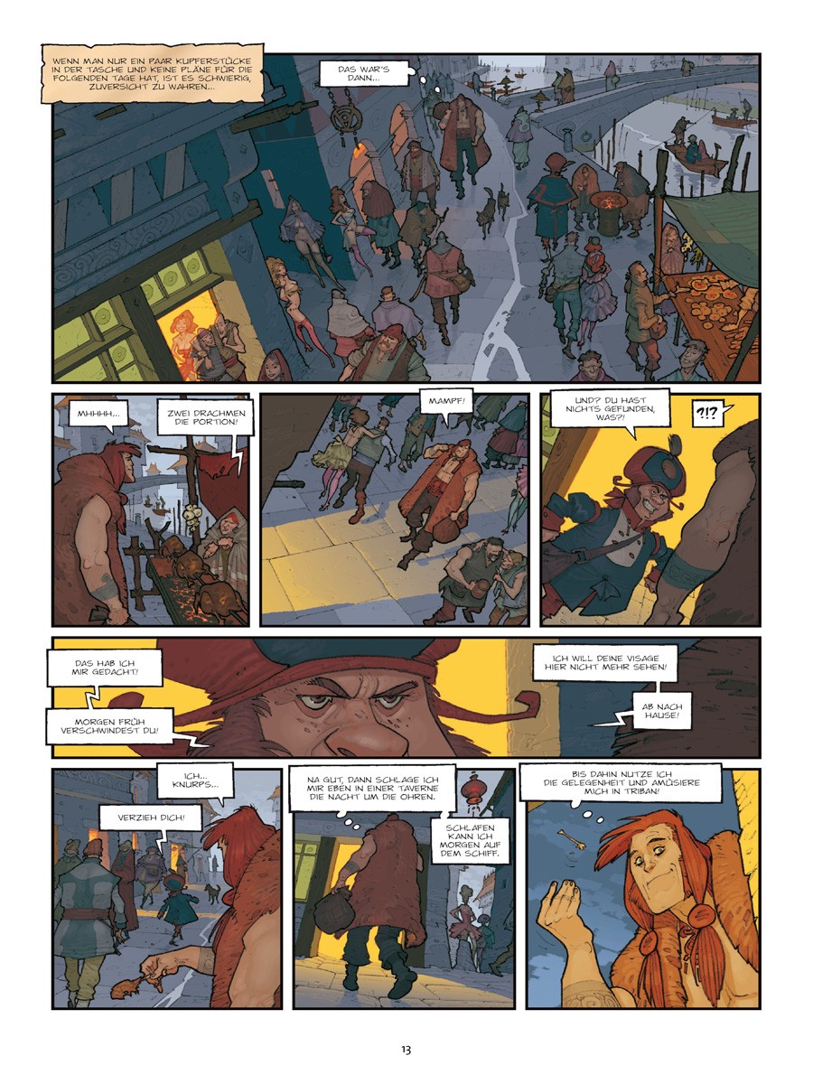 Es gab eine Zeit, als Triban noch kein von der restlichen Welt abgeschnittenes Reich war, sondern eine reiche Handelsstadt… Doch seit sie verflucht ist, kommen jede Nacht die Wasserspeier und steinernen Drachen, die die Fassaden der Häuser der einflussreichsten Familien schmücken, und fressen die Wände. Um die Zerstörung zu stoppen, sind die Weisen von Eckmühl gefragt. Oder sollte etwa Nükhu der Barbar die schlagkräftige Lösung aller Probleme sein?