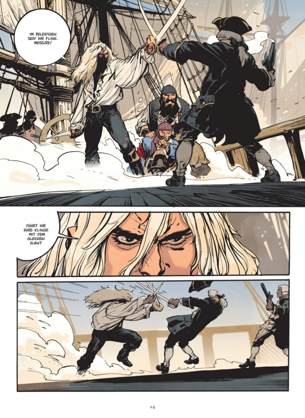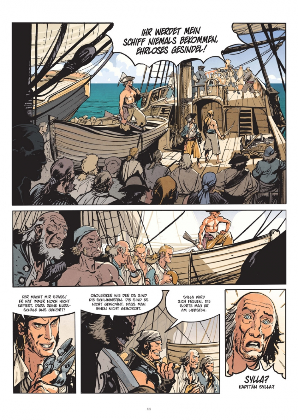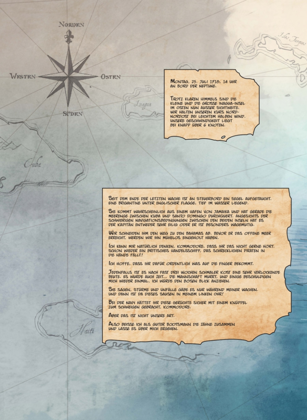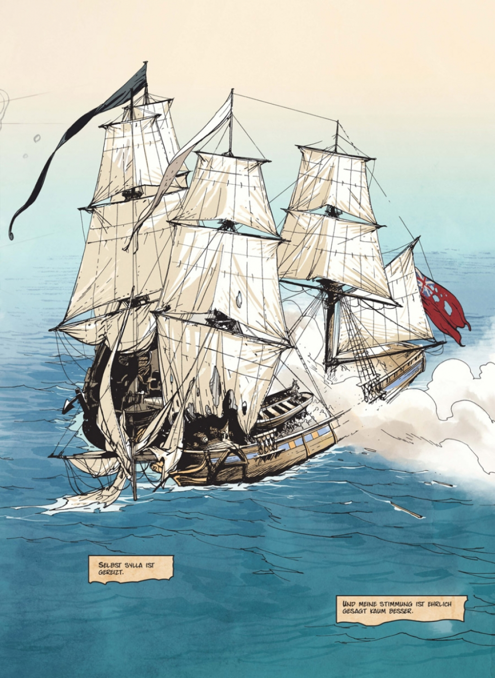 Unvermittelt trifft der Piratenkapitän Olivier mitten auf dem Meer auf ein sehr in Mitleidenschaft gezogenes fremdes Schiff. Darauf sind keinerlei Menschen zu sehen.