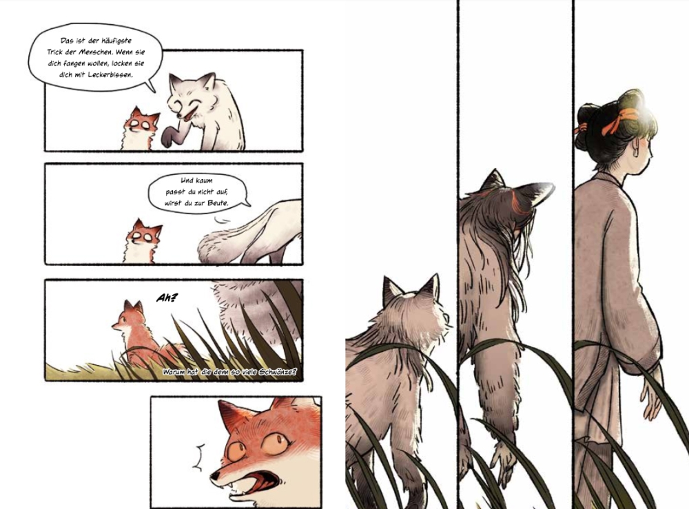 „Es heißt, dass Fuchsgeister über die Fähigkeit verfügen, Menschen mit ihren Illusionen zu bezaubern. Sie können sich in das Idealbild der Menschen verwandeln, eine Verbindung zu ihnen aufbauen und ihre Gedanken absorbieren. Durch das Absorbieren dieser Gedanken können Fuchsgeister sich langsam zu neunschwänzigen Füchsen entwickeln. Solange die Gestalt, in die sie sich verwandeln, nur lange genug die Herzen der Menschen zufriedenstellt, kann jeder Fuchsgeist vollständig zum Menschen werden.“ Im Zentrum der Geschichte stehen zwei Fuchsgeister, die über Jahrhunderte hinweg immer wieder in Menschengestalt schlüpfen.