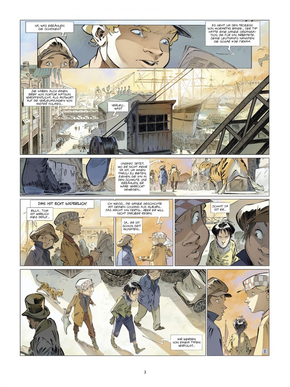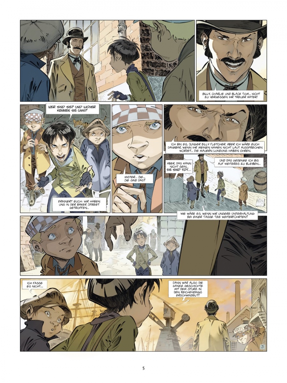 Billy, Charlie und Black Tom sind drei unzertrennliche Freunde, die sich im Londoner East End, einem echten Gaunerviertel, gemeinsam durchschlagen. Zum Glück können die drei auf den Schutz eines gewissen Sherlock Holmes zählen, der sie bisweilen als Straßenspione engagiert. Doch als Black Toms Freundin vor ihren Augen gekidnappt wird, müssen sie die von ihrem Mentor gelernten Tricks schnellstens in die Tat umsetzen. Dabei bekommen sie ganz unerwartet Hilfe von einem vierten kleinen Strolch.