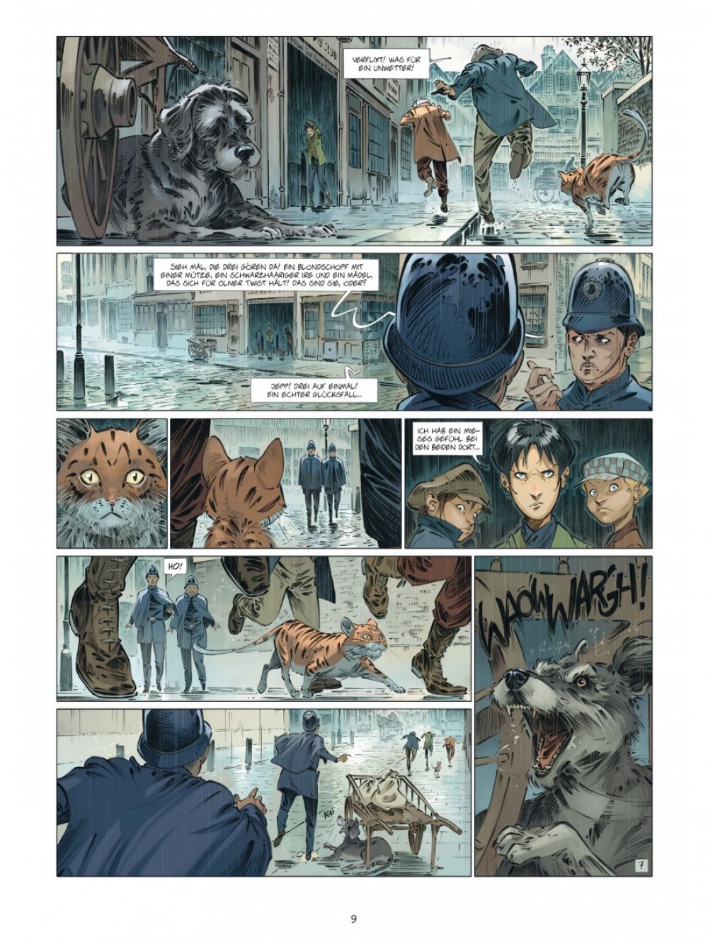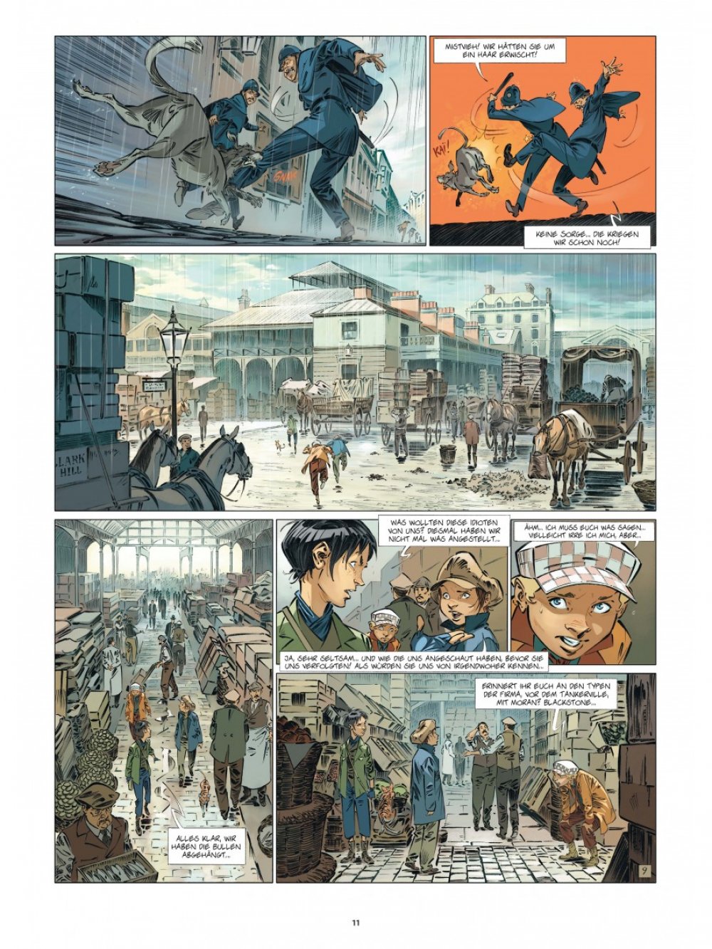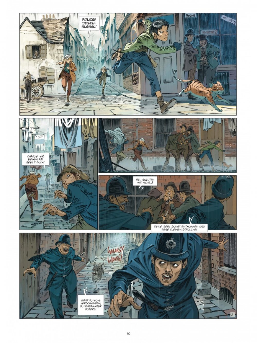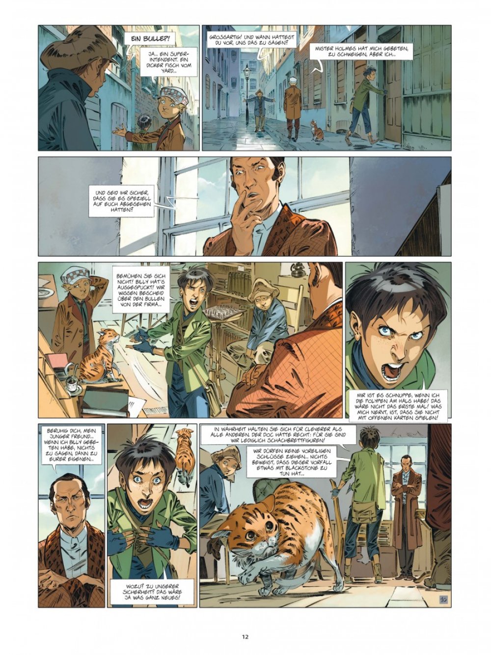 Billy, Charlie und Black Tom sind drei unzertrennliche Freunde, die sich im Londoner East End, einem echten Gaunerviertel, gemeinsam durchschlagen. Zum Glück können die drei auf den Schutz eines gewissen Sherlock Holmes zählen, der sie bisweilen als Straßenspione engagiert. Doch als Black Toms Freundin vor ihren Augen gekidnappt wird, müssen sie die von ihrem Mentor gelernten Tricks schnellstens in die Tat umsetzen. Dabei bekommen sie ganz unerwartet Hilfe von einem vierten kleinen Strolch.