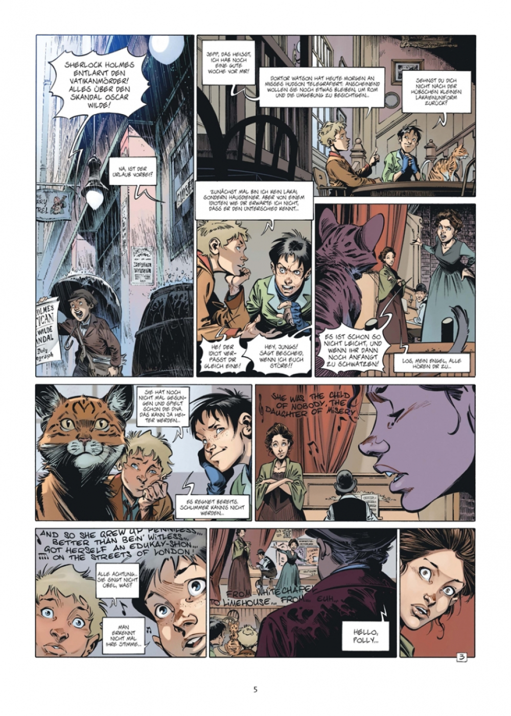 Billy, Charlie und Black Tom sind drei unzertrennliche Freunde, die sich im Londoner East End, einem echten Gaunerviertel, gemeinsam durchschlagen. Zum Glück können die drei auf den Schutz eines gewissen Sherlock Holmes zählen, der sie bisweilen als Straßenspione engagiert, und auch auf die von Watson, ihrem treuen Kater. Und somit wären die Vier von der Baker Street komplett, das jüngste Detektivteam der viktorianischen Epoche!