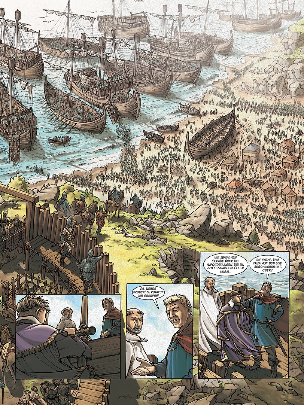 Wer glaubt heute noch, Christoph Kolumbus habe Amerika »entdeckt«? Und damit sind noch nicht einmal die zahlreichen Menschen angesprochen, die die sogenannte »Neue Welt« schon seit Jahrtausenden bevölkerten, als sich der Genueser gegen Ende des 15. Jahrhunderts verschätzte und die karibischen Inseln kurzerhand zu »Westindien« erklärte. Nein, schon rund 500 Jahre zuvor standen die ersten Europäer auf nordamerikanischem Boden. Die Frage sollte also eher lauten, wie war es möglich, dass diese Tatsache über so lange Zeit nahezu unbekannt blieb? »Die Wege des Herrn« schildert, wie es gewesen sein könnte. Mächtige Interessen haben demnach versucht, diese Kenntnis für sich zu behalten. Ihr Problem: Es existiert die Karte eines Wikingerhäuptlings, die Auskunft gibt über das verborgene Paradies im Westen und die auf verschlungenen Pfaden immer wieder weitergereicht wird. Daraus entspinnt sich eine enorme Intrige zu verschiedenen Zeiten, an unterschiedlichen Orten, die von Wilhelm dem Eroberer über die Kreuzzüge und Tempelritter bis eben zu Kolumbus führt. Und die obskuren Kräfte schrecken vor nichts zurück, um sicherzustellen, dass die Karte nicht in die falschen Hände gerät. Ein packendes Geschichtsdrama rund um eines der größten Geheimnisse des Mittelalters.