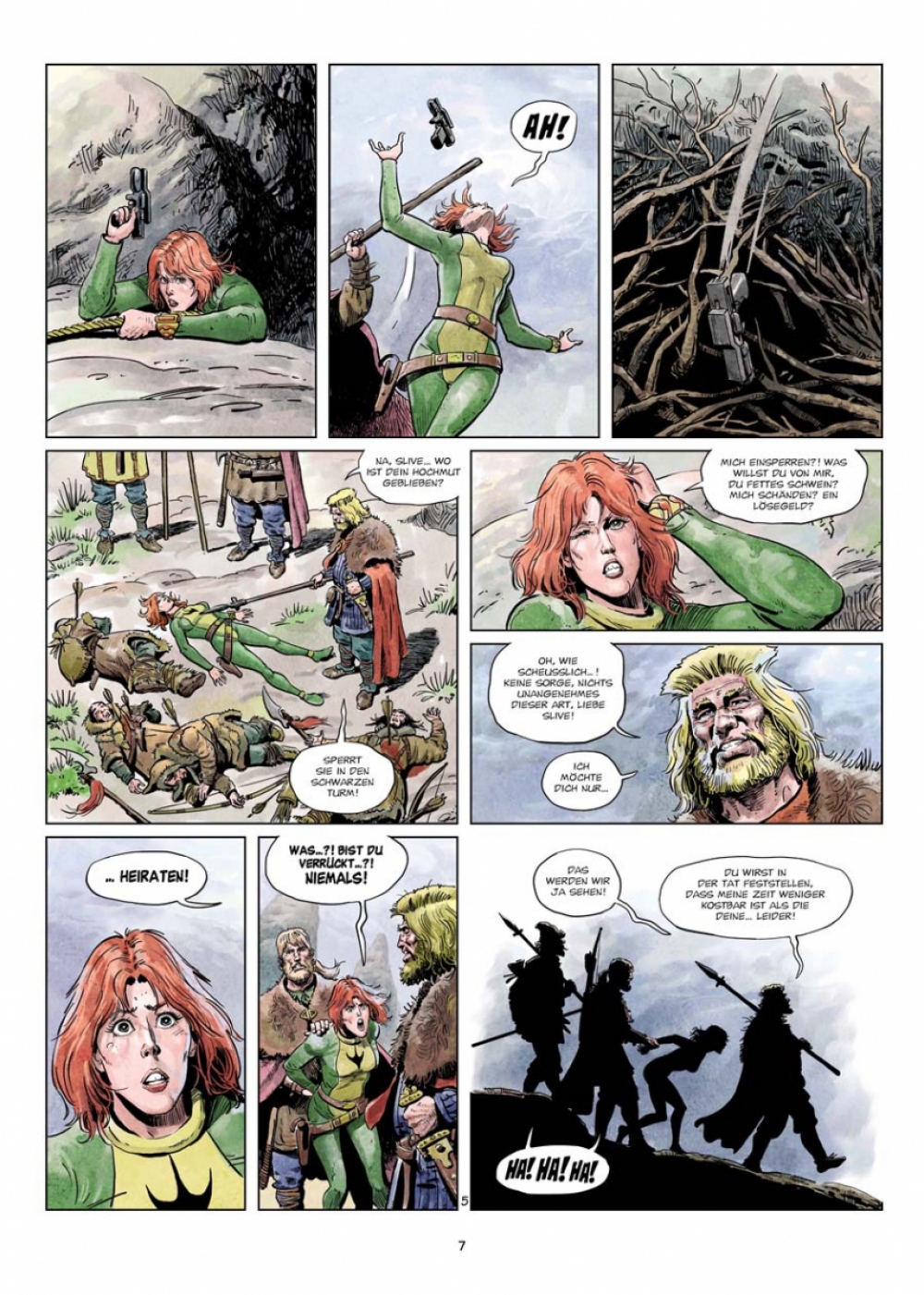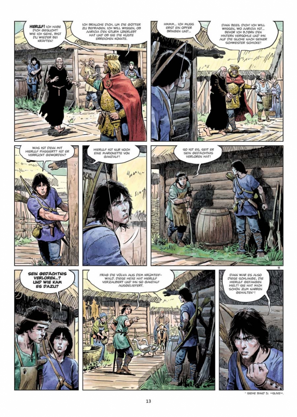 Es herrscht Hunger in dem Dorf, wo der junge Skalde Thorgal und seine Freundin vergeblich auf die Rückkehr des Drakkars warten, der die auf Kriegsmission ausgefahrenen Wikingerkrieger zurückbringen soll. In Abwesenheit von Gandalf dem Verrückten schlägt dessen Sohn Björn vor, Thorgal den Göttern zu opfern! Zum Glück sichert der Fang dreier Wale, die durch den Gesang unseres Helden angelockt wurden, den Dorfbewohnern das Überleben. Doch entpuppen sich die Wale als drei junge Frauen, die Opfer eines Fluchs wurden. Thorgal muss versuchen, sie zu retten und macht sich auf, die furchtbaren Nornen zu bekämpfen, denn allein diese sind imstande, den Frauen ihre wahre Gestalt wiederzugeben...