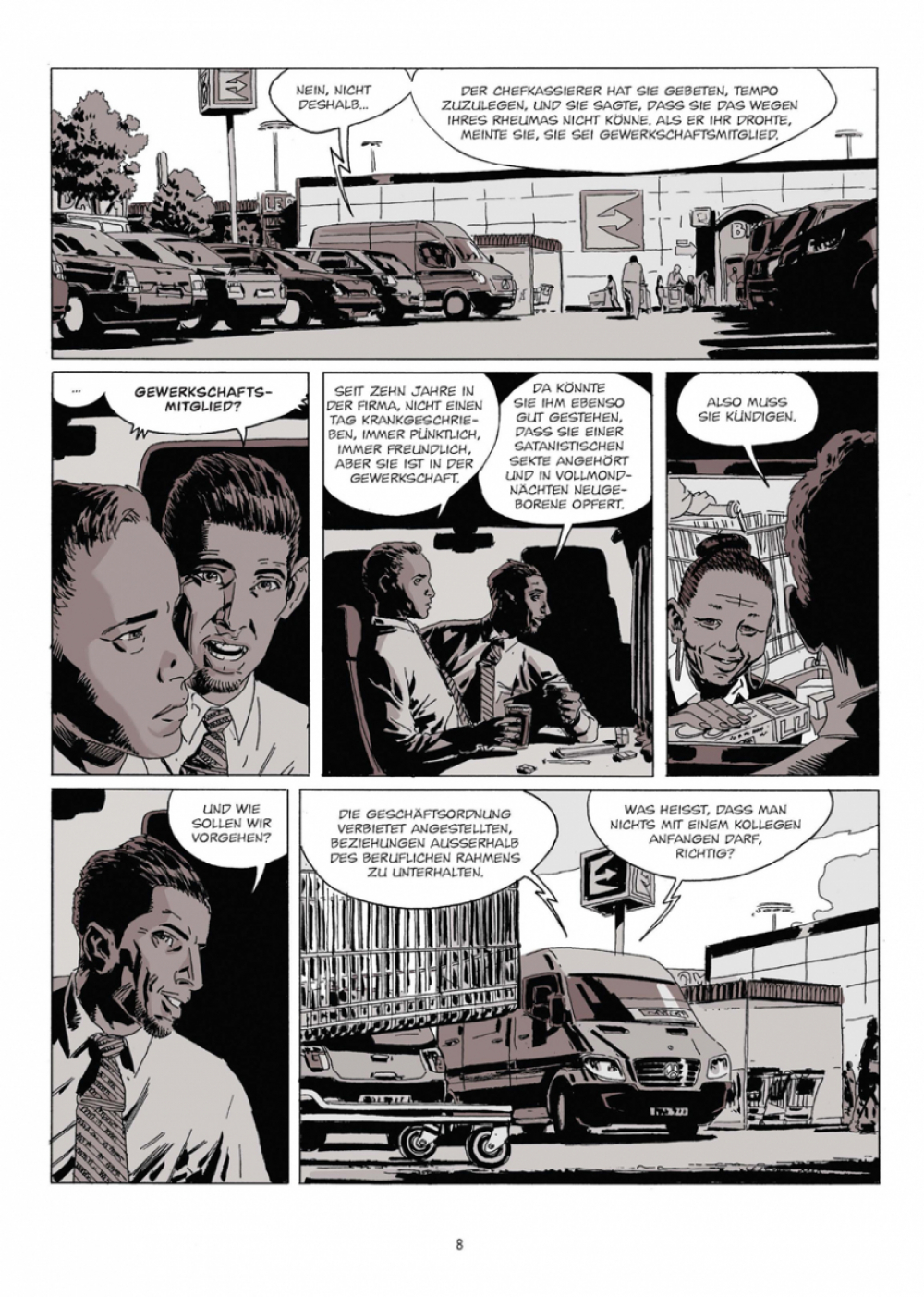 Martine ist eine gesichtslose Arbeiterin wie abertausend andere. Die zarte Liebelei mit einem Kollegen ist der einzige Lichtblick in ihrem trostlosen Alltag an der Supermarktkasse. Und ein fristloser Kündigungsgrund, denn der gnadenlose Takt unternehmerischer Effizienz duldet keine Ablenkungen. Das Entlassungsgespräch verläuft aus Versehen tödlich – nichts, was ein paar gute Anwälte nicht richten könnten. Aber Martines vier Söhne, Gezeichnete einer bestialischen Welt, in der sie keinen Platz finden, sind auf Rache aus. Und wenn Wölfe gegen Wölfe kämpfen, wird Blut fließen.