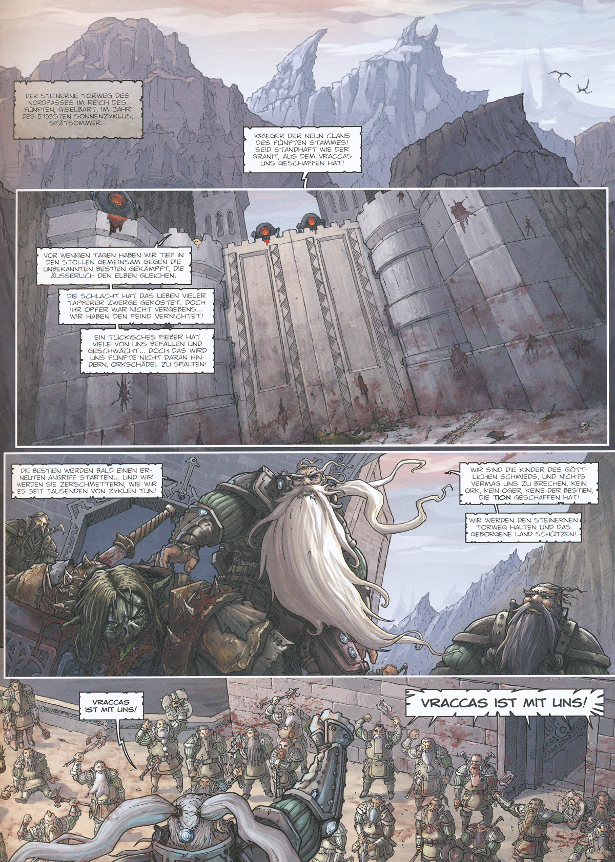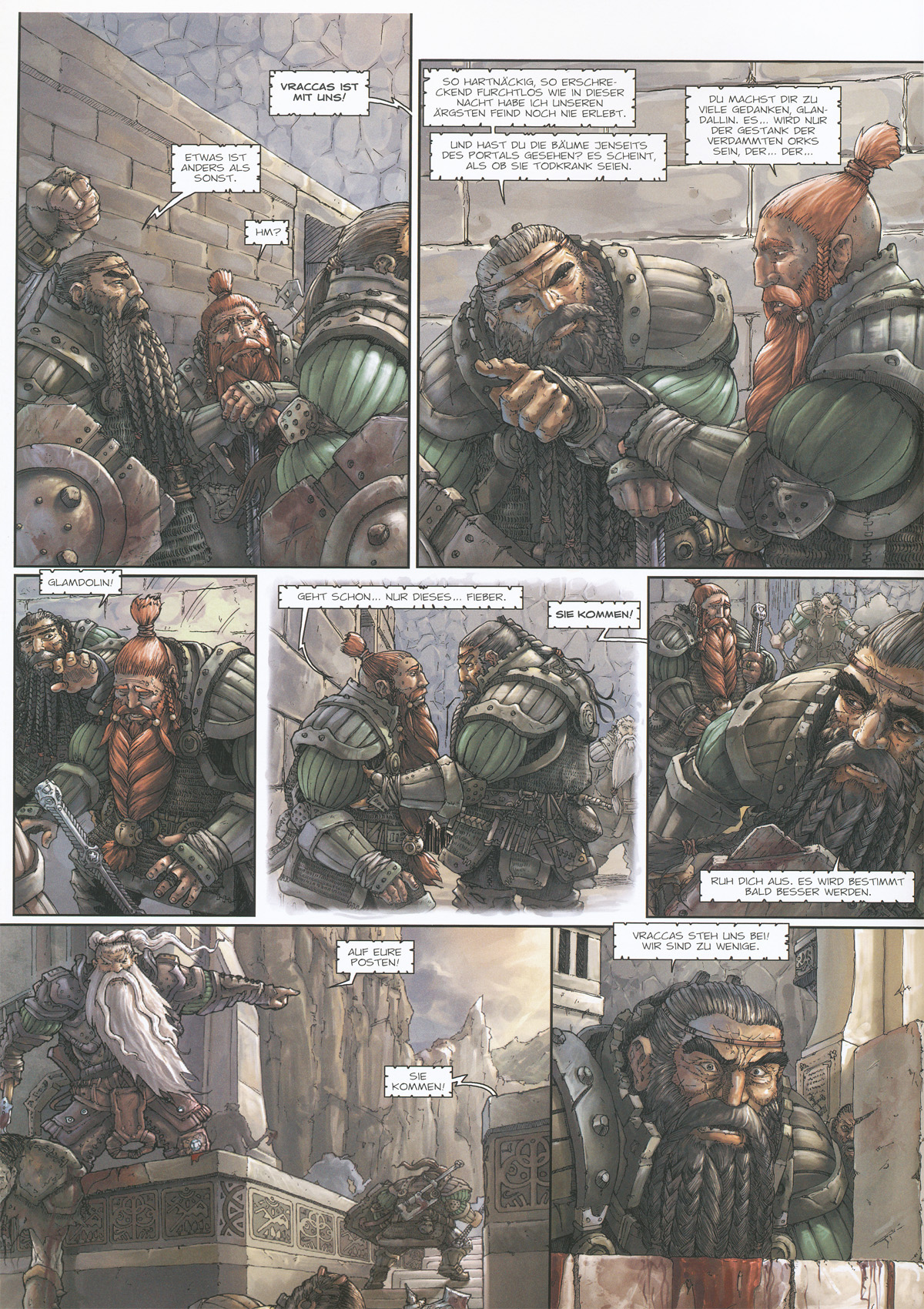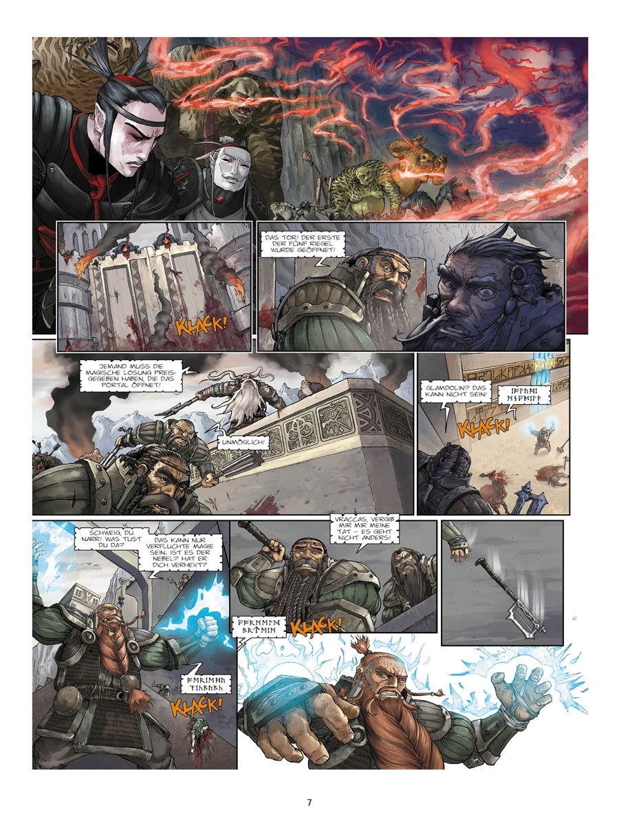 Markus Heitz‘ im Jahr 2003 veröffentlichter Roman »Die Zwerge« (dem bis 2008 noch drei weitere »Zwerge«-Werke folgten) zählt zu den erfolgreichsten deutschen Fantasy- Romanen und befand sich über Monate auf den Belletristik-Bestsellerlisten. Für Heitz selbst markierte die Veröffentlichung den endgültigen Durchbruch als Autor. Es folgten Hörbuch-Adaptionen und spektakulär inszenierte Lesungen, die einem aufwändigen Theaterstück glichen. Konzipiert als vierbändige Reihe (die nach Abschluss zudem um eine Gesamtausgabe im Graphic Novel Format ergänzt werden soll) beginnt nun beim Splitter Verlag die nächste mediale Übersetzung des ersten Buchs: Der spektakuläre Überlebenskampf der Zwerge, deren Land von gleich drei gewaltigen Kräften bedroht wird – den Trollen, den Ogern und den Orks –, hält nun auch im Comic Einzug. In Zusammenarbeit mit Szenarist Yann Krehl (»Das Wolkenvolk«, »Frostfeuer«) wird Zeichner Che Rossié den Roman in vier Alben adaptieren. Ein atemberaubendes Comicdebut des bislang hauptsächlich im Rollenspiel-Segment tätigen Mönchengladbachers. Markus Heitz erhielt für seine Roman- Reihe »Die Zwerge« zwei Mal den Deutschen Phantastik Preis (2005 und 2006)