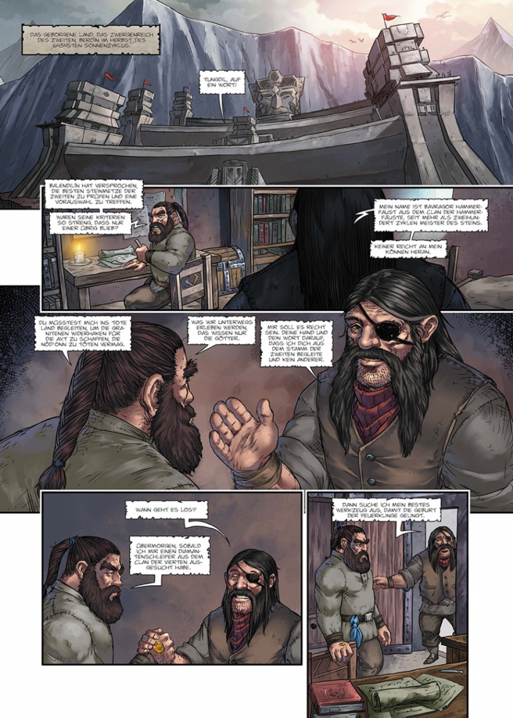 Jetzt erscheint der dritte Band der Reihe: Der spektakuläre Überlebenskampf der Zwerge, deren Land von gewaltigen Kräften bedroht wird – den Ogern und den Orks sowie den mysteriösen Albae –, steuert auf seinen Höhepunkt zu.