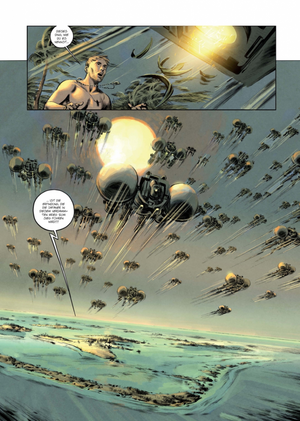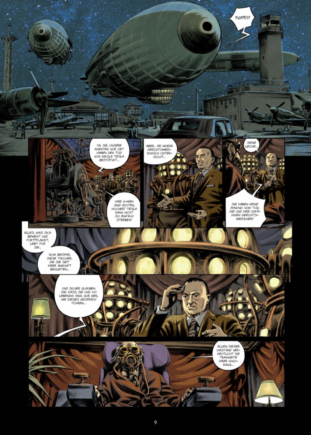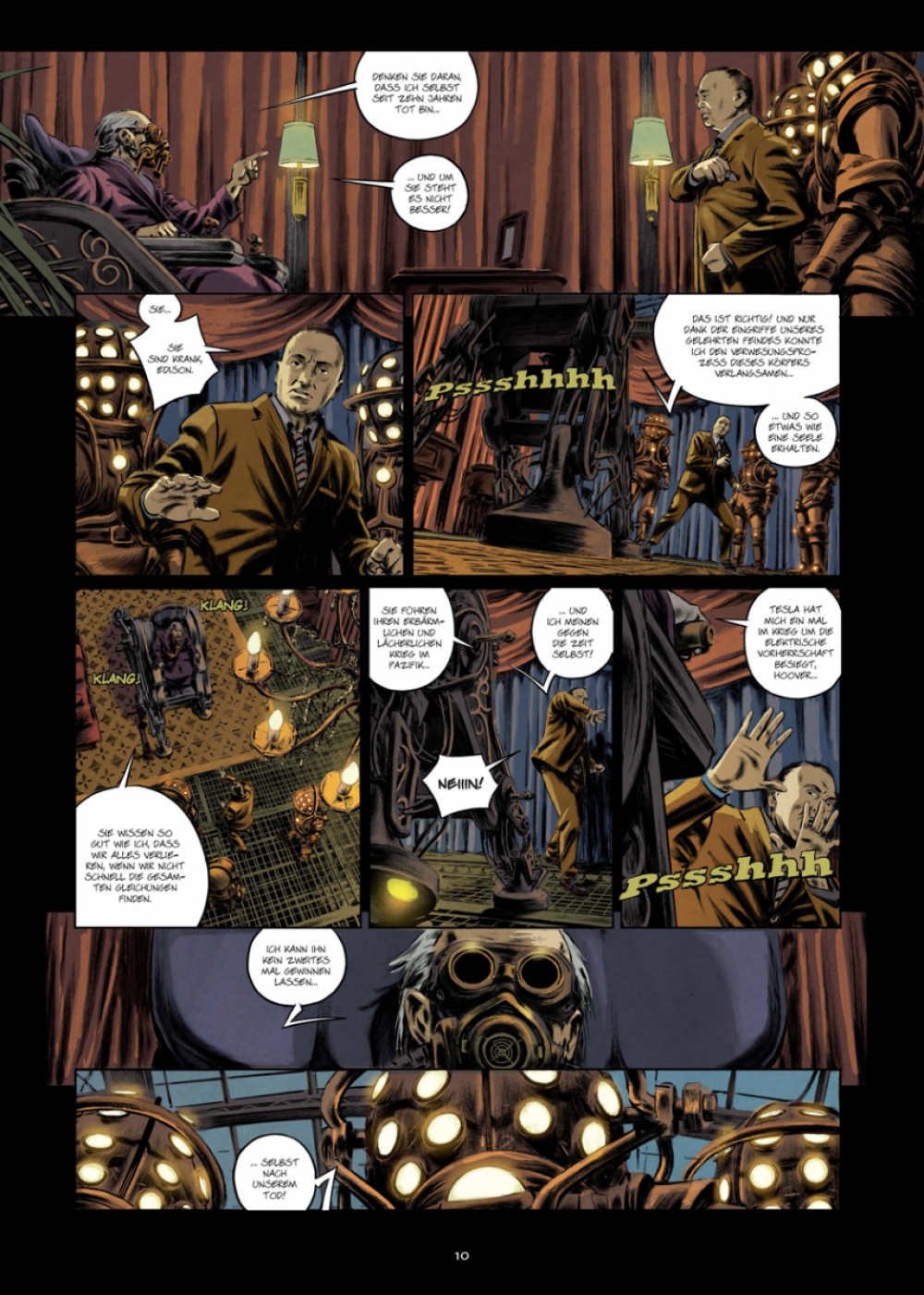 Eine wunderbare Mischung aus Pulp, klassischer Science-Fiction und einem Hauch Steampunk – getaucht in eine vorwiegend sepiafarbene Optik, die exakt die zwielichtige Atmosphäre widerspiegelt, die ihr gebührt!