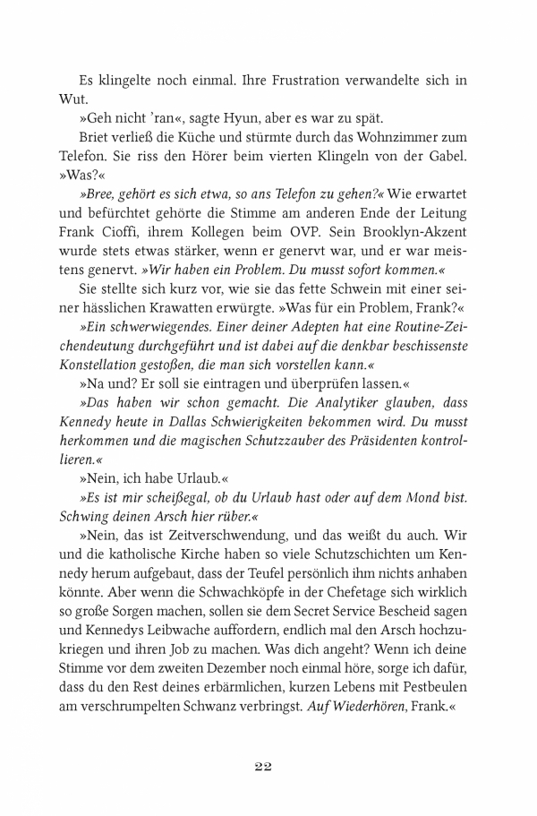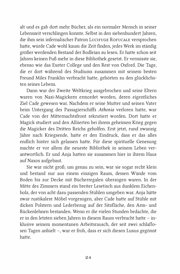 November 1963. Cade und Anja haben ein Jahrzehnt lang im Verborgenen gelebt und neue Magier ausgebildet. Dann löst die Ermordung von Präsident Kennedy eine Mordserie aus, deren Opfer allesamt Magier sind – mit Cade, Anja und ihren Verbündeten als Hauptziel. Ihre einzige Hoffnung zu überleben: zu lernen, wie man sich gegen die finstere Geheimorganisation, bekannt als die Schattenkommission, wehrt.