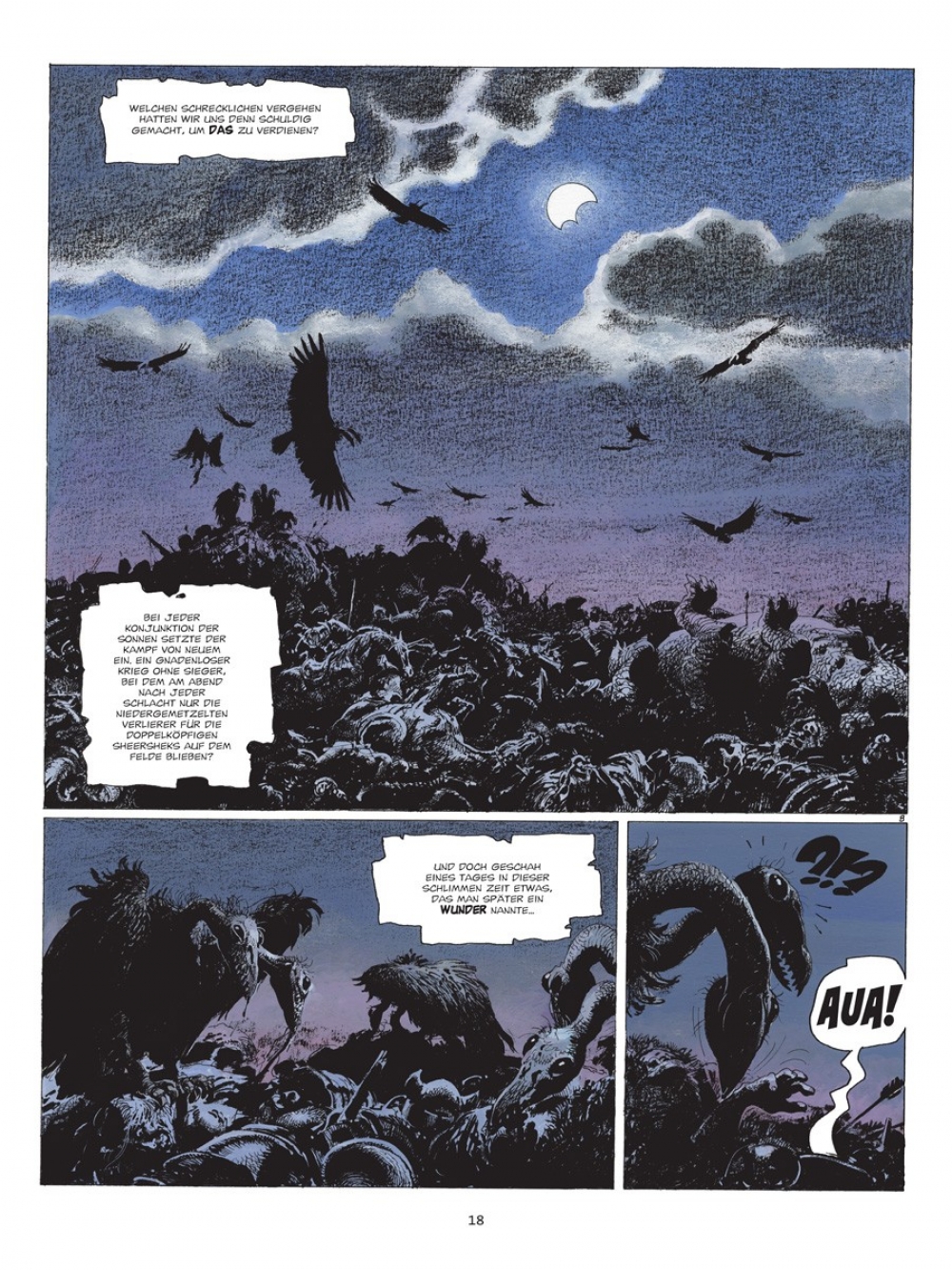Seit ihrem monumentalen Meisterwerk Thorgal sind Jean van Hamme und Grzegorz Rosinski mit innovativen Fantasy-Erzählungen bestens vertraut. In Die große Macht des kleinen Schninkel vermengen sie den epischen Atem einer Herr der Ringe-Quest mit galliger Religionssatire. Das Ergebnis: eine buchstäblich phantastische Graphic Novel, deren Neuausgabe bei Splitter in gewohnt bibliophiler Aufmachung erscheint.