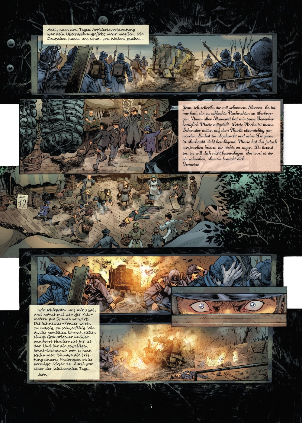Marne, 1918. Die Bolschewiki und die Mittelmächte unterzeichnen den Vertrag von Brest-Litowsk. Im Osten befreit, kann der deutsche Generalstab nun seine Kräfte auf die Westfront konzentrieren. Für die Deutschen geht es darum, die Operation der letzten Chance – die sogenannte „Frühlingsoffensive” – zu starten, um den Krieg vor dem massiven Eintreffen der Amerikaner zu gewinnen. Um erfolgreich zu sein, setzen sie auf die Sturmtruppen, die speziell dafür ausgebildet wurden, die Schützengräben zu überwinden, die die Westfront seit drei Jahren blockieren. So verliefen die ersten Kämpfe zu ihren Gunsten und der Bewegungskrieg flammte erneut auf. Die Deutschen rückten gefährlich nahe an die Marne und Paris heran, und die französische Armee warf ihre letzten Kräfte in die Schlacht: In dieser zweiten Schlacht an der Marne wurden die berühmten Taxis von 1914 nun durch die neuen Renault-FT-Panzer ersetzt.