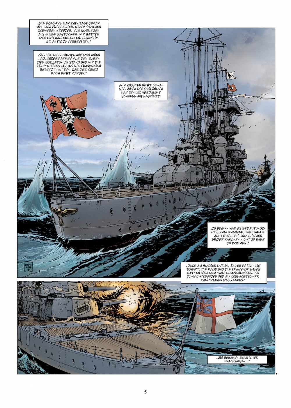 Ein Deutschland, das die Schwächen französischer und englischer Politik ausnutzte, um im geheimen den Aufbau neuer Waffensysteme zu forcieren, wie das mächtige Kriegsschiff Bismarck, das während des Krieges den Auftrag hatte, all jene alliierten Seestreitkräfte zu versenken, die so unvorsichtig wären, sich aufs Meer hinauszuwagen.