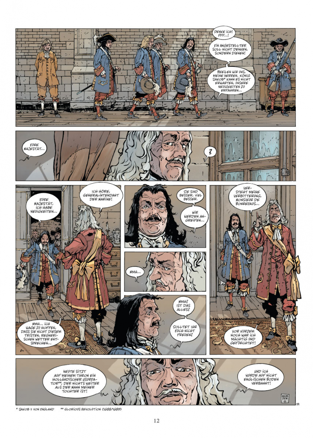 Seit 1688 ist Frankreich in den Pfälzischen Erbfolgekrieg verwickelt und ein großes Bündnis hat sich gegen die Expansionsambitionen von König Ludwig XIV. gebildet. In diesem Zusammenhang beschließt der Sonnenkönig 1692, dem abgesetzten katholischen König Jakob II. bei der Rückeroberung des Throns von England zu helfen. Ein kühner Plan: die Sicherung der Hoheit über den Ärmelkanal, um der Armee die Überquerung zu erleichtern. Leider segelt eine unvollständige französische Flotte auf Drängen des ungeduldigen Königs los. Vizeadmiral de Tourville hat seine Befehle erhalten: „Stecht um jeden Preis in See und stellt Euch dem Feind, egal wie zahlreich er ist“. Im XVII. Jahrhundert werden Befehle nicht diskutiert, vor allem, wenn sie vom König stammen. Und selbst dann nicht, wenn auf See eine doppelt so große feindliche Flotte wartet.