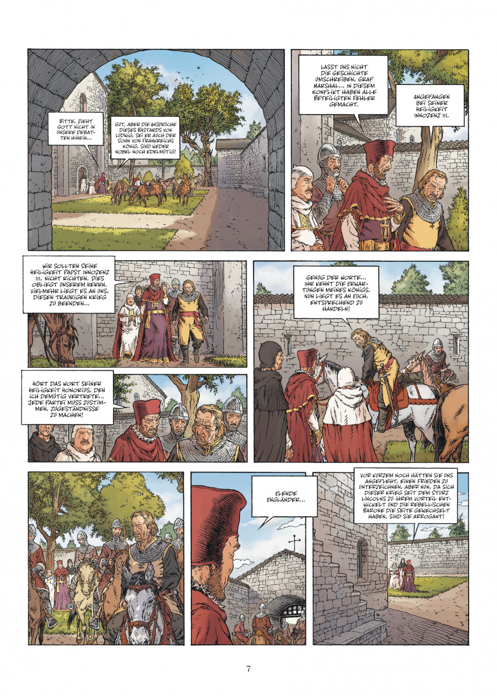 Der von Prinz Ludwig, dem Sohn des französischen Königs Philippe II. Auguste, angeführte Feldzug wird eine Zeit lang siegreich sein, und Ludwig proklamiert sich in London sogar zum König von England. Doch der anschließende Tod des Papstes und Johannes von England verändert die Situation plötzlich. Der Heilige Stuhl wünscht sich Frieden und der englische Adel sieht keinen Sinn mehr darin, die Waffen gegen seinen jungen König Heinrich zu erheben, der sich darüber hinaus bereit erklärt, ihre Forderungen anzuhören.