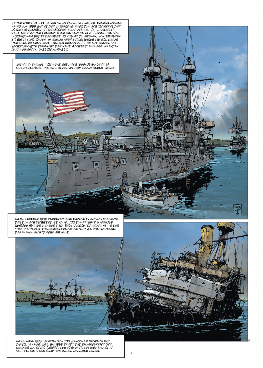 Als am 15. Februar 1898 die Nacht über den ruhigen Gewässern des Hafens von Havanna hereinbrach, riss eine gewaltige Explosion die Bordwände der USS Maine auf. Es ist 21:40 Uhr und das amerikanische Schlachtschiff sinkt in wenigen Minuten. Unfall, Angriff, was auch immer, der amerikanische Präsident William McKinley, der Konflikte vermeiden wollte, kann nicht lange zögern. Angetrieben von einer aufpeitschenden Presse, die nach Rache schrie, brach am 25. April 1898 ein Krieg zwischen den beiden Nationen aus, und die Dinge gerieten außer Kontrolle.