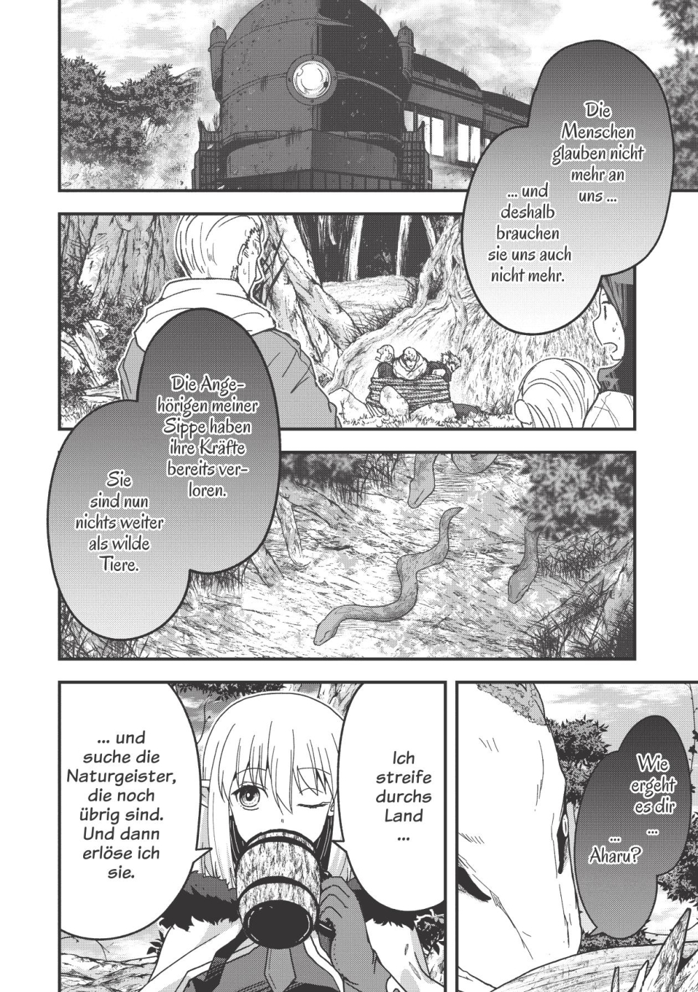 In einer Welt, in der Magie durch die fortschreitende Industrialisierung rasch an Bedeutung verliert, begibt sich Aharu, die letzte überlebende Elfe, auf eine Reise durch ein vom Krieg gezeichnetes Land.