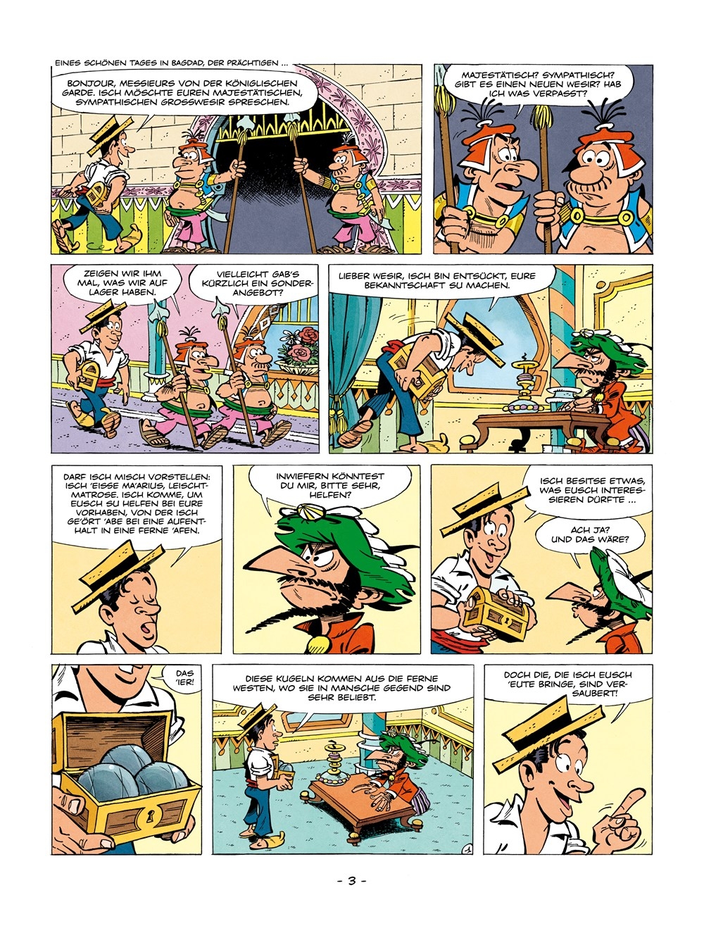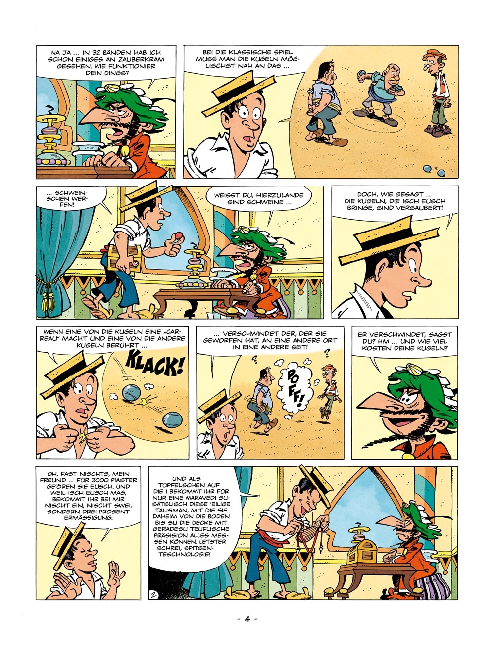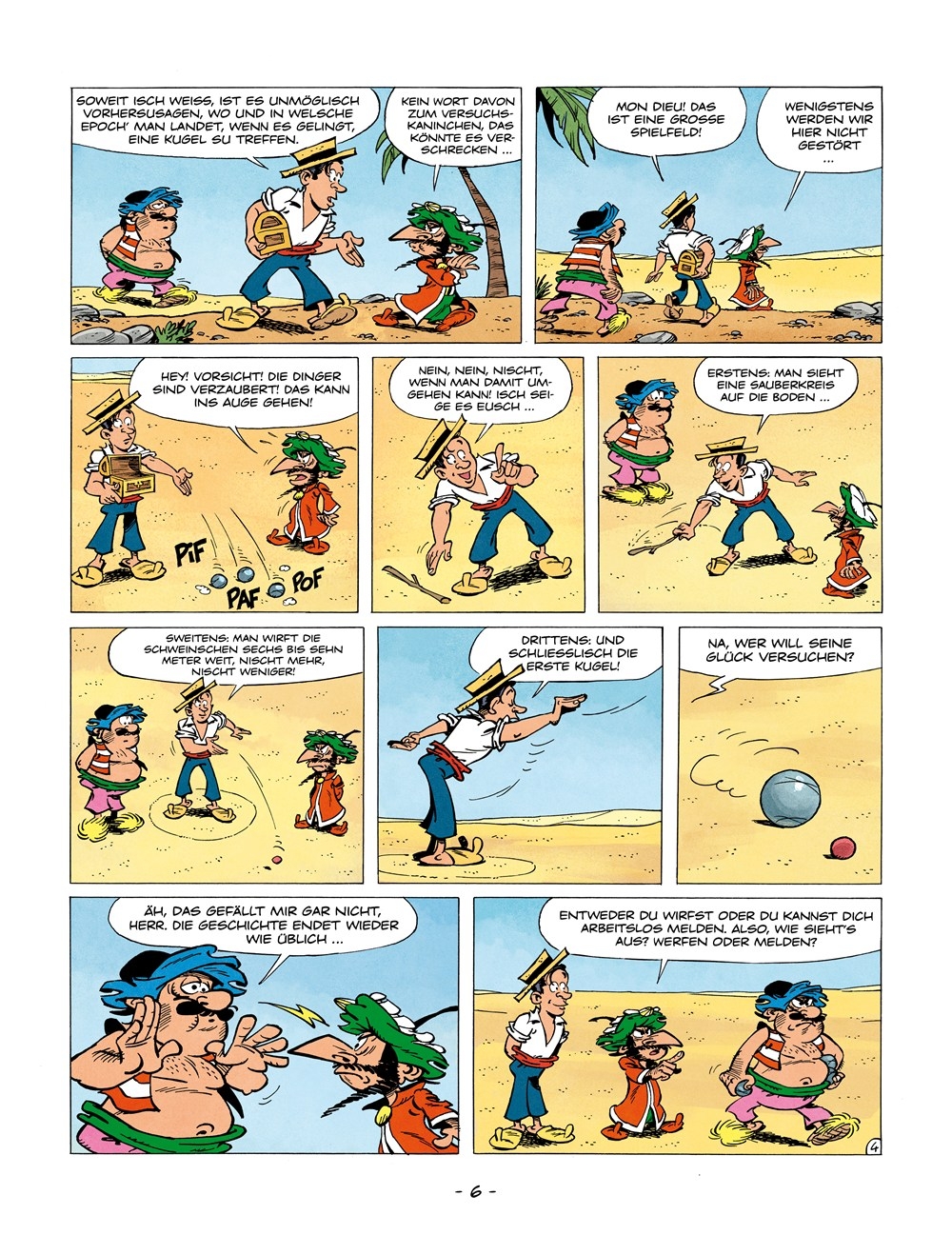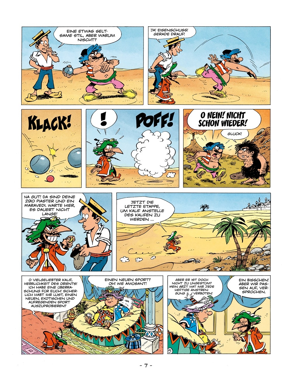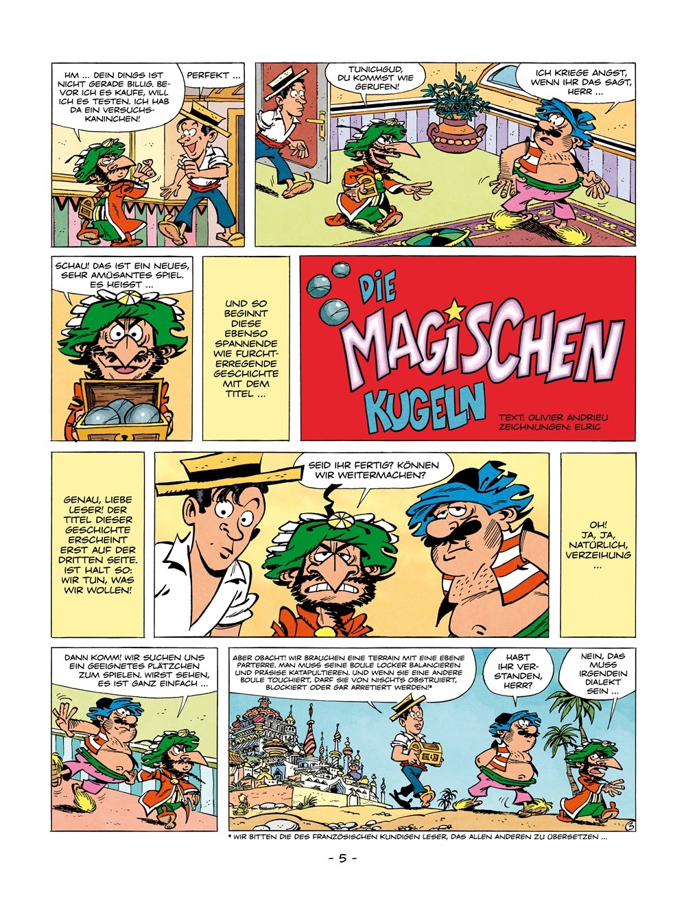 Auch diesmal probiert er es in fünf brandneuen Kurzgeschichten von Autor Olivier Andrieu und Zeichner Elric wieder und wieder, wobei er wie üblich auf jede Menge skurrile Gestalten trifft und allerhand aberwitzige Utensilien zum Einsatz kommen. Ob ein magisches Boule-Spiel, ein verzauberter Thron, der mehr schlecht als recht navigierende Geist aus der Lampe eines Fakirs, dubiose Investitionen oder mysteriöse Geburtstagskerzen: Die abstrusesten Abenteuer sind wie immer garantiert!