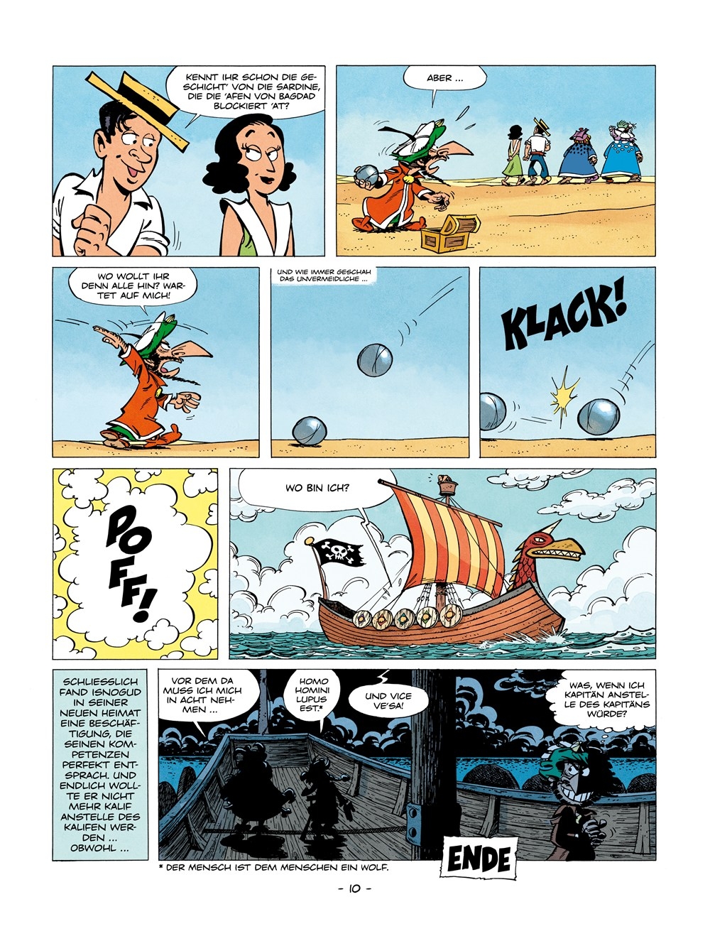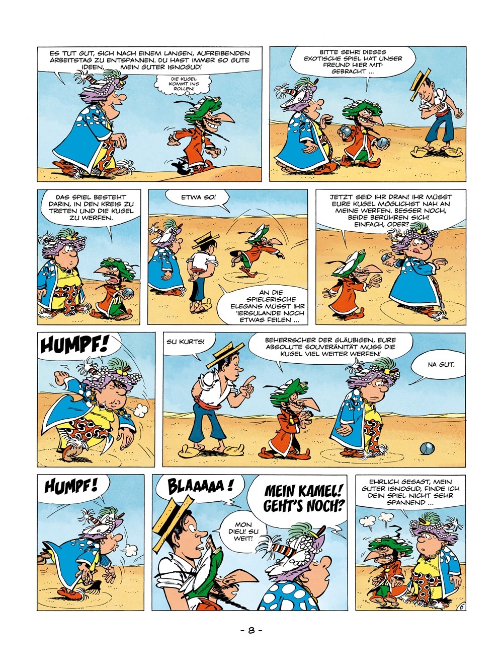 Isnogud feiert Jubiläum! Seit sechzig Jahren versucht der bitterböse Großwesir nun schon, Kalif anstelle des gutmütigen Kalifen Harun al-Pussah zu werden. Und bisher ist er noch jedes Mal gescheitert.
