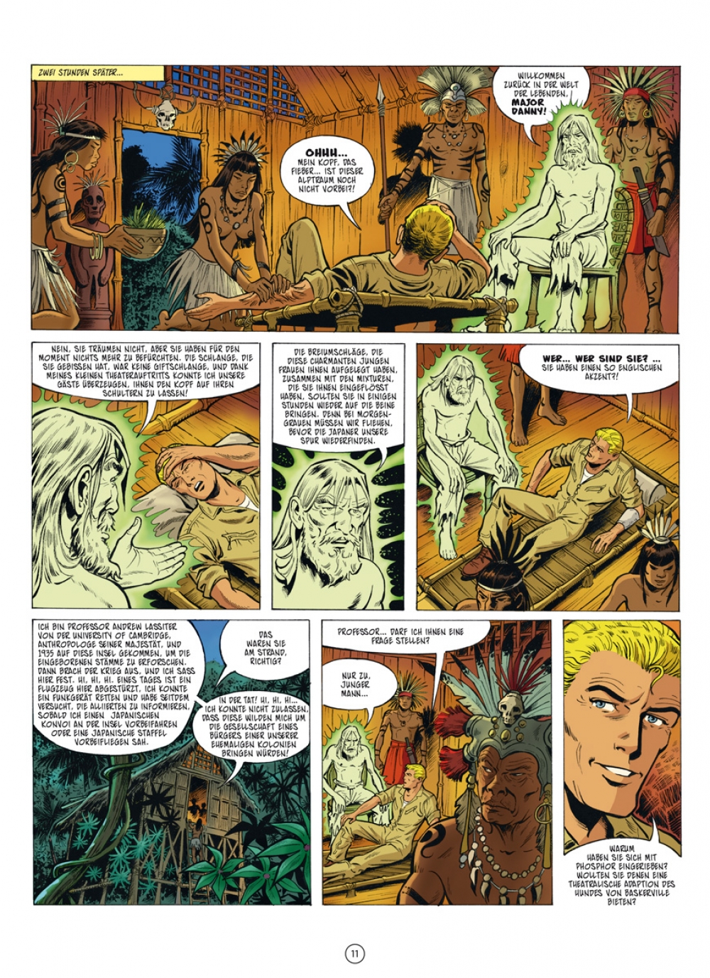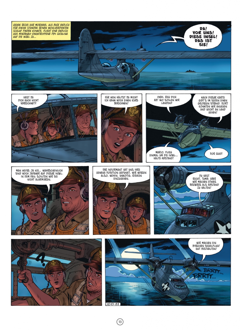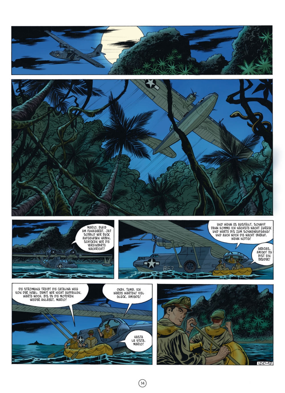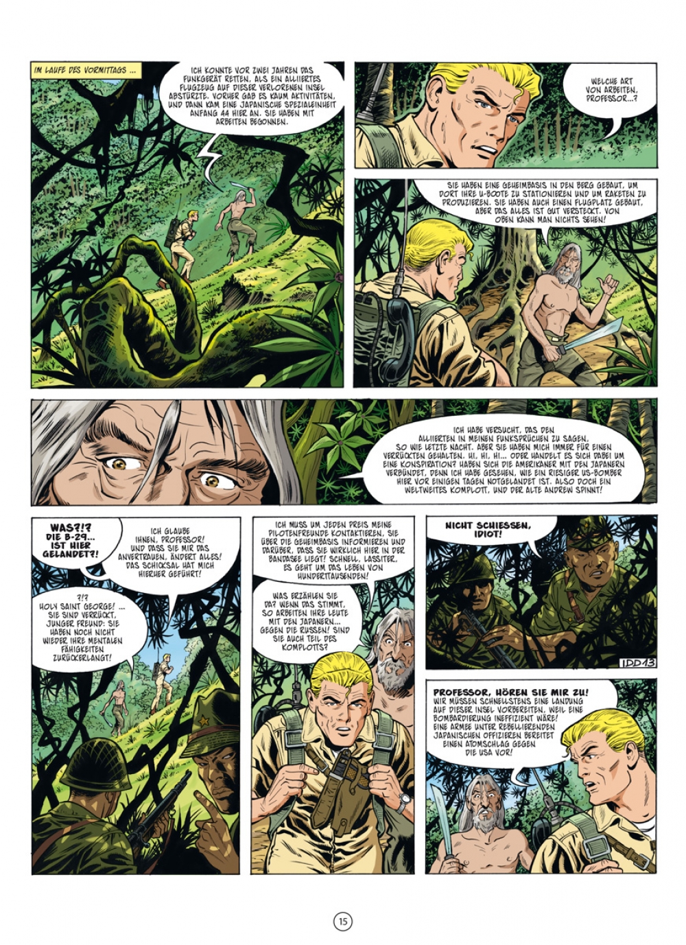 Buck Danny ist auf einer Insel gestrandet. Doch dort sind auch die Japaner und ihre deutschen Helfer, die er sucht, um einen verheerenden Angriff von dieser Gruppe mit einer Atombombe auf die USA zu vereiteln. Können er und seine Kameraden diesen verhindern?